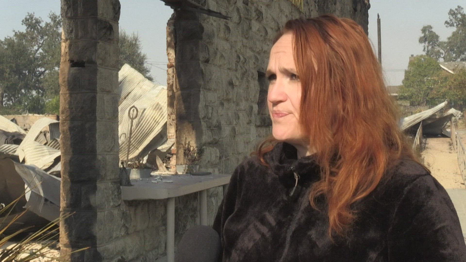 Camera dolly left to right of old school fire truck sitting on a ranch