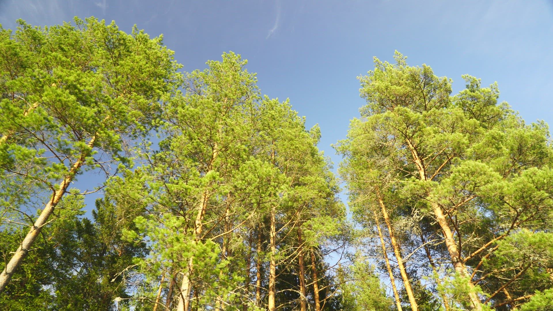 > pine trees - pov along pine trees in swedish forest