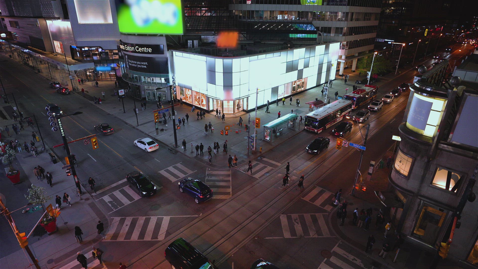 > Toronto, Canada, Slow Motion - Slow Motion of Dundas Square intersection at night