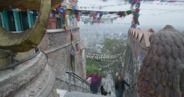 Scenes of Buddhist worship, shrines and followers in Kathmandu.