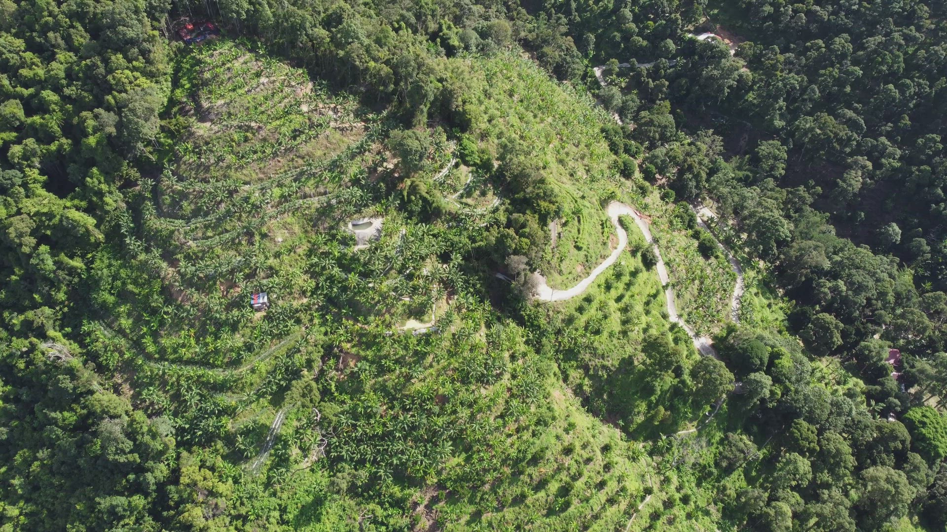 Aerial fly over green hill near Balik Pulau