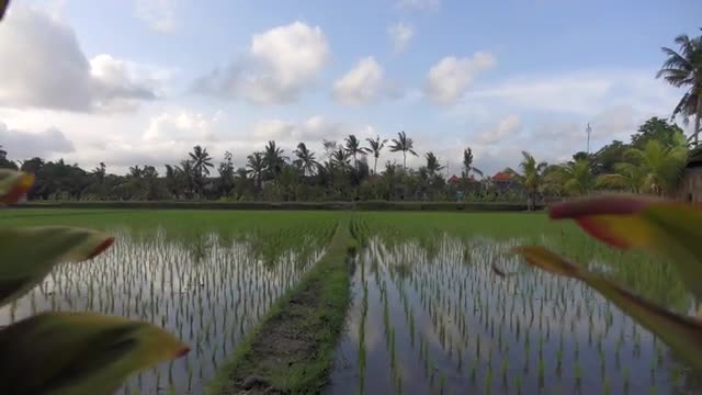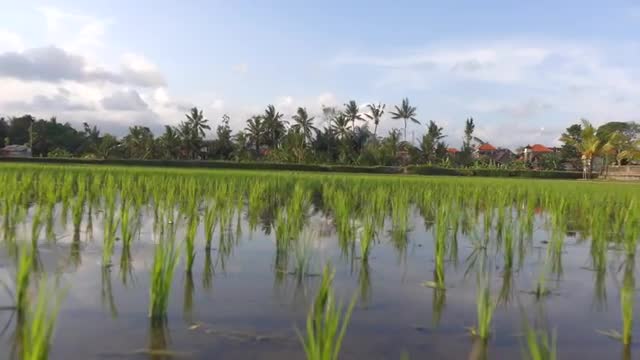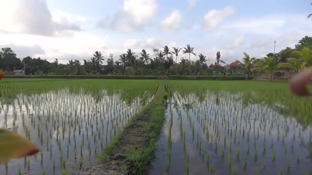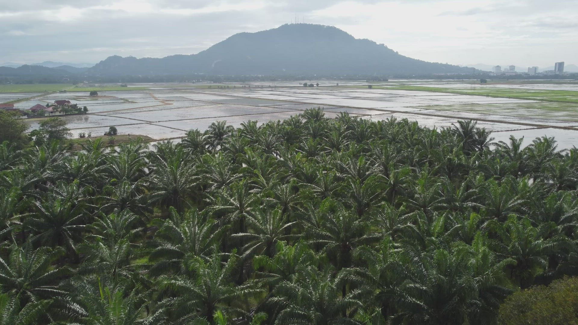 2157488 - Aerial view dramatic sunset at water season paddy field