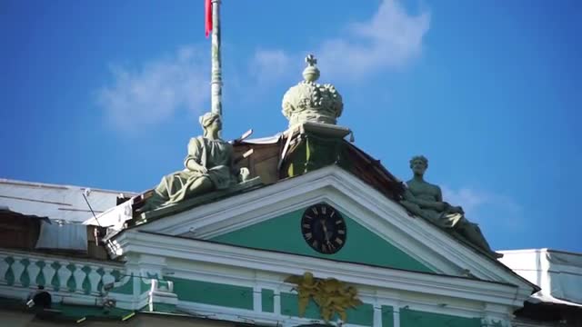 Aerial move over old heritage house in sunny cloudy day
