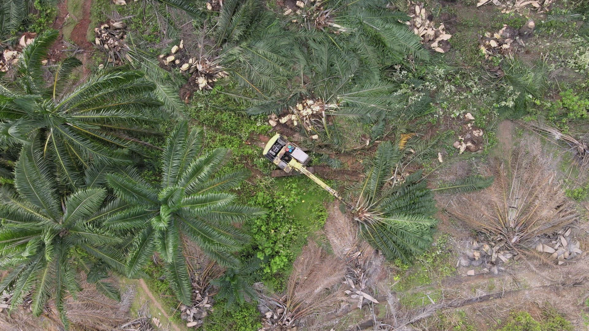2144489 - Aerial top down view excavator remove the oil palm tree