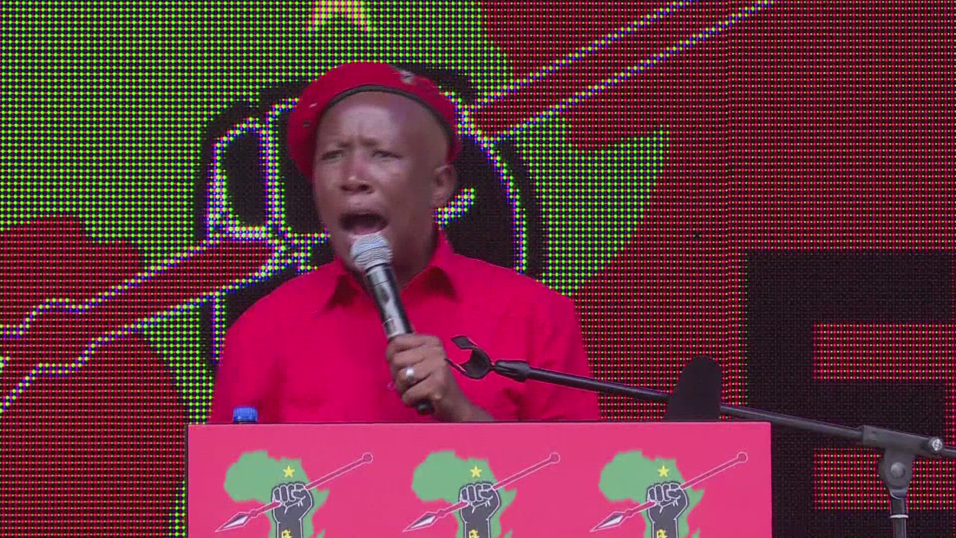 Hundreds of protesters from a radical leftist party in South Africa march on the French embassy in Pretoria to demand that France leave Africa. Dressed in their trademark red T-shirts and caps, the Economic Freedom Fighters carry placards reading "France is a colonial conqueror" and "France must pay for its colonial crimes". IMAGES AND SOUNDBITES