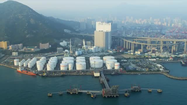 Aerial view bridge connect to reclamation land of Gurney Wharf