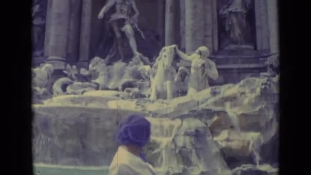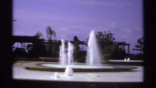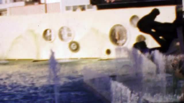 535155 - 1964: Young boys enjoying cultural beauty of water fountain sculpture.