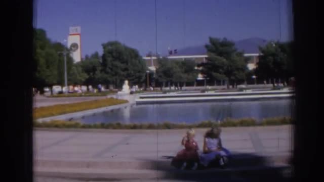 659738 - 1962: children sitting in a park in front of a large pool of water IZMIR TURKEY
