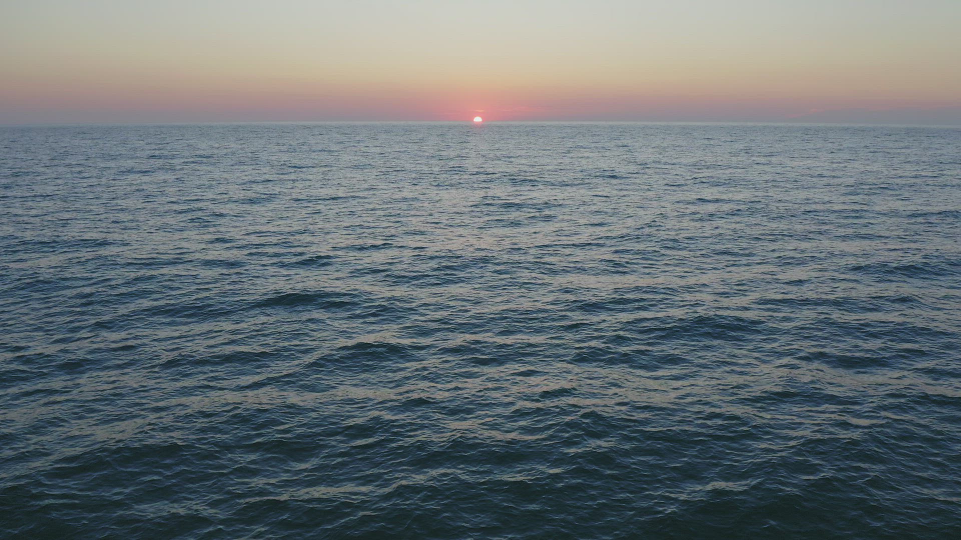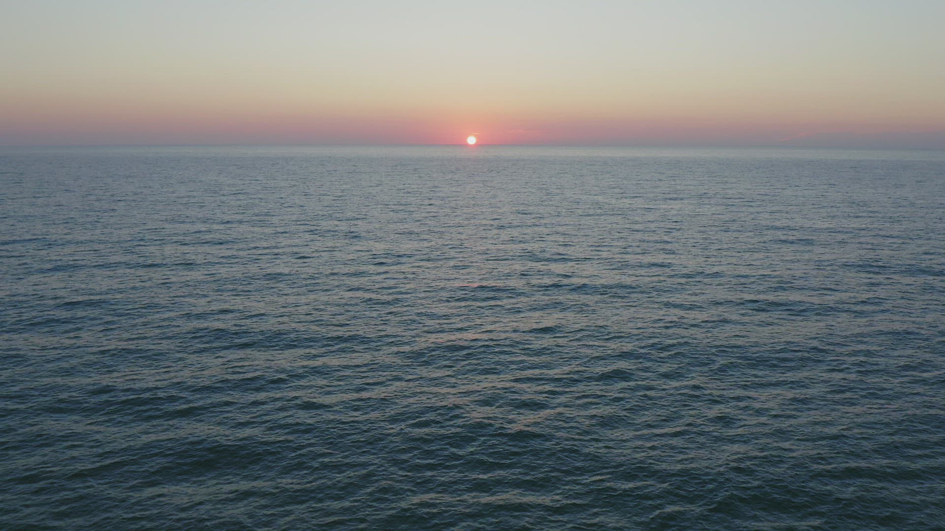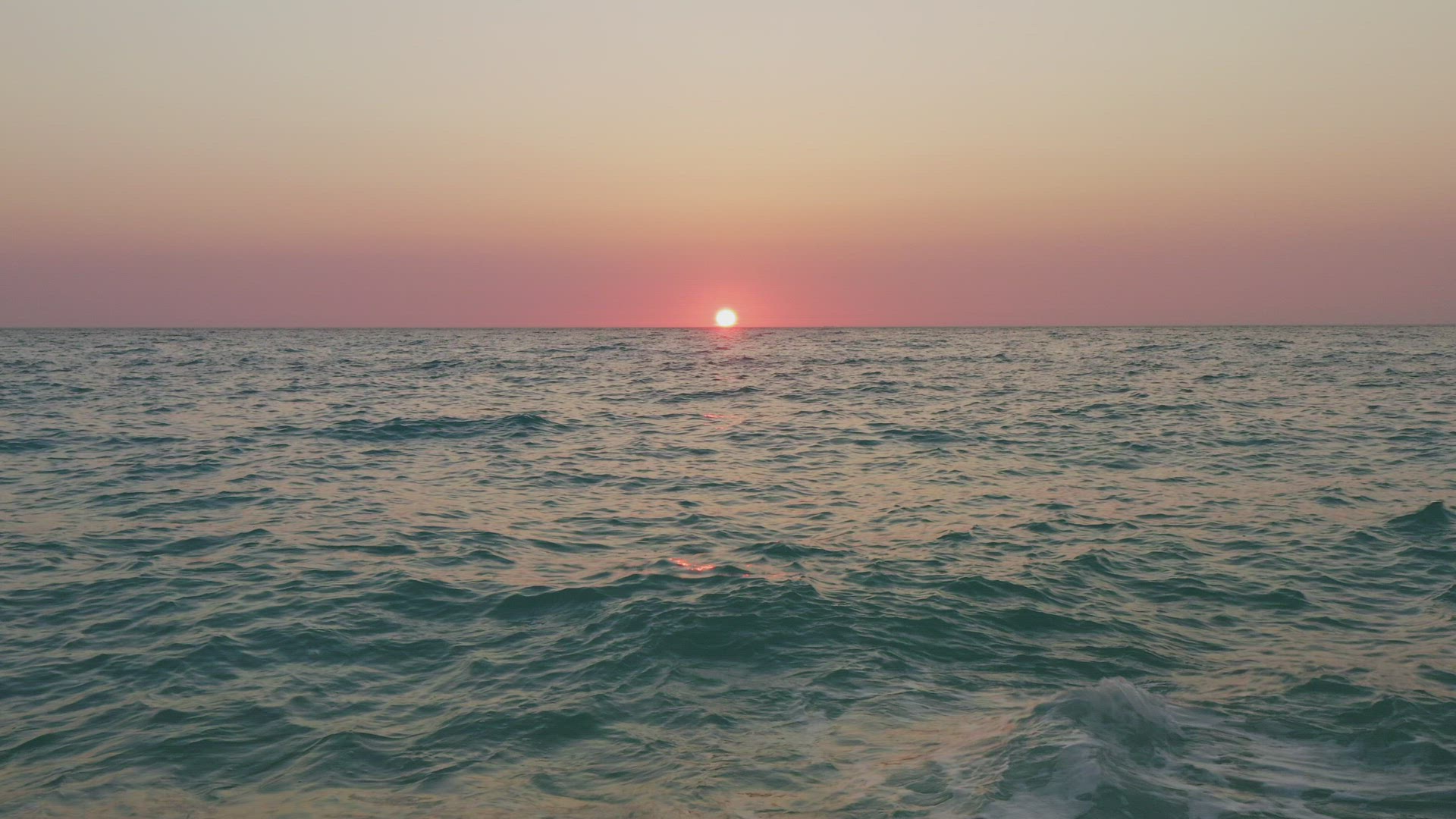 1034268 - Sun sets into the sea. Water reflects sunlught. Waves roll on sandy beach