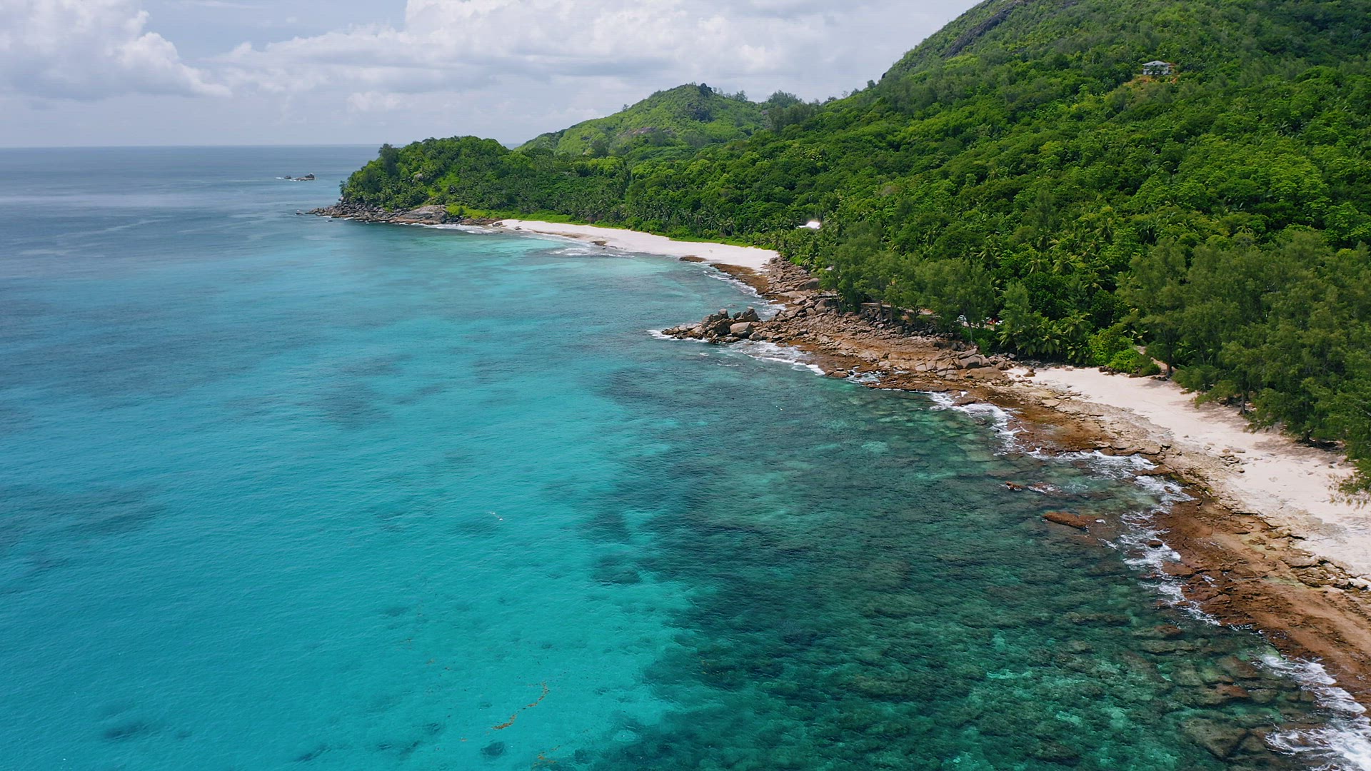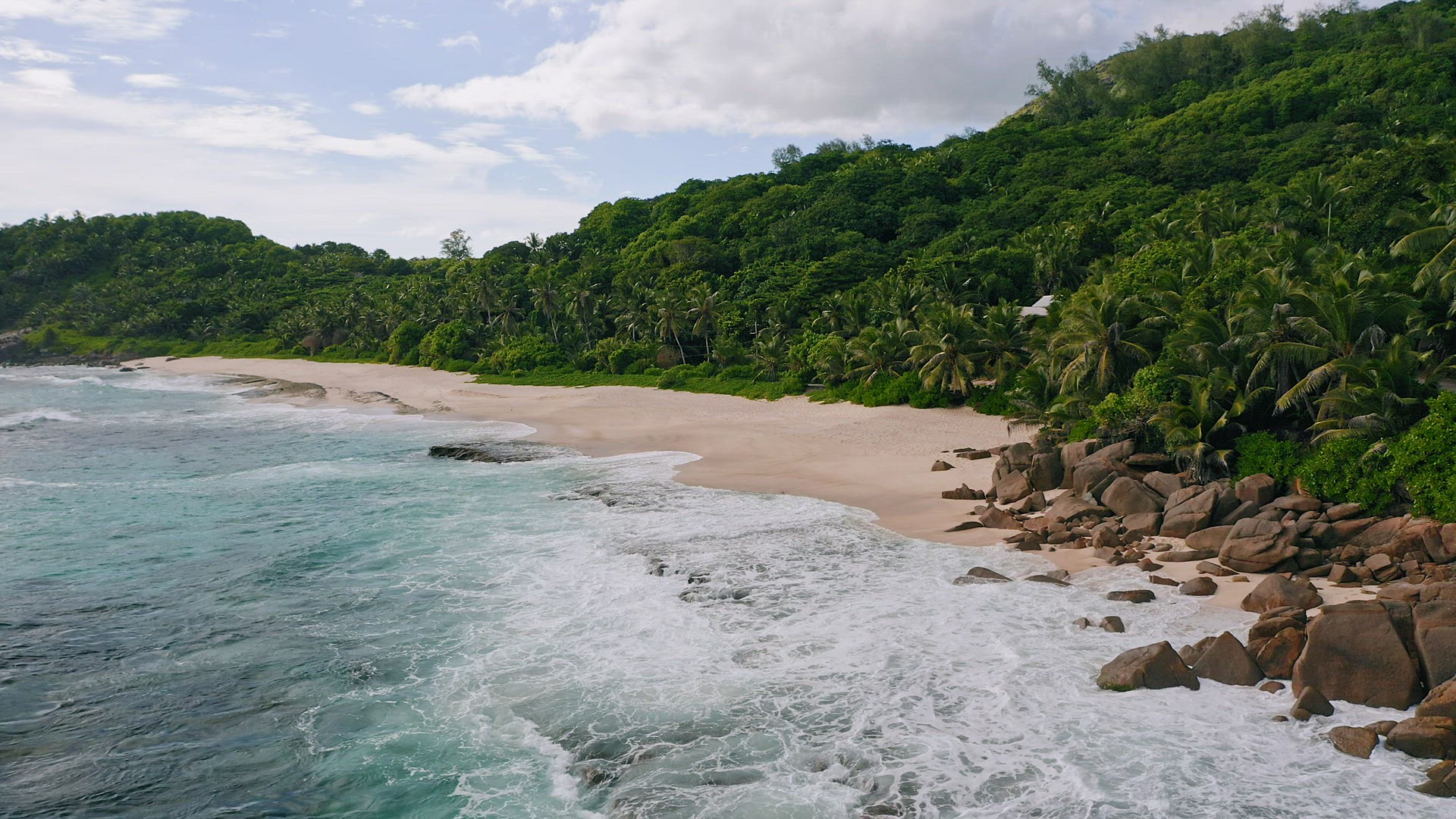 > Aerial drone 4k bird eye footage with circle movement of tropical paradise beach with coconut trees
