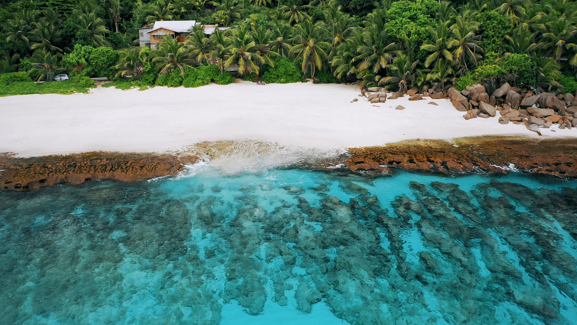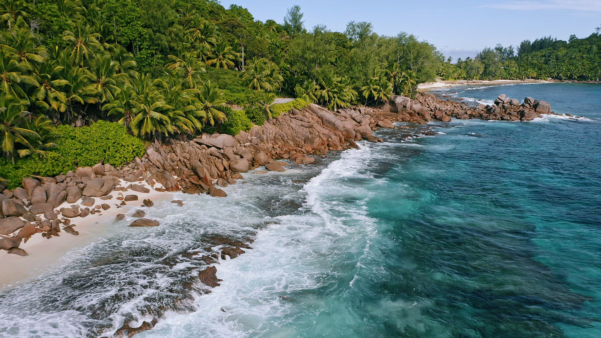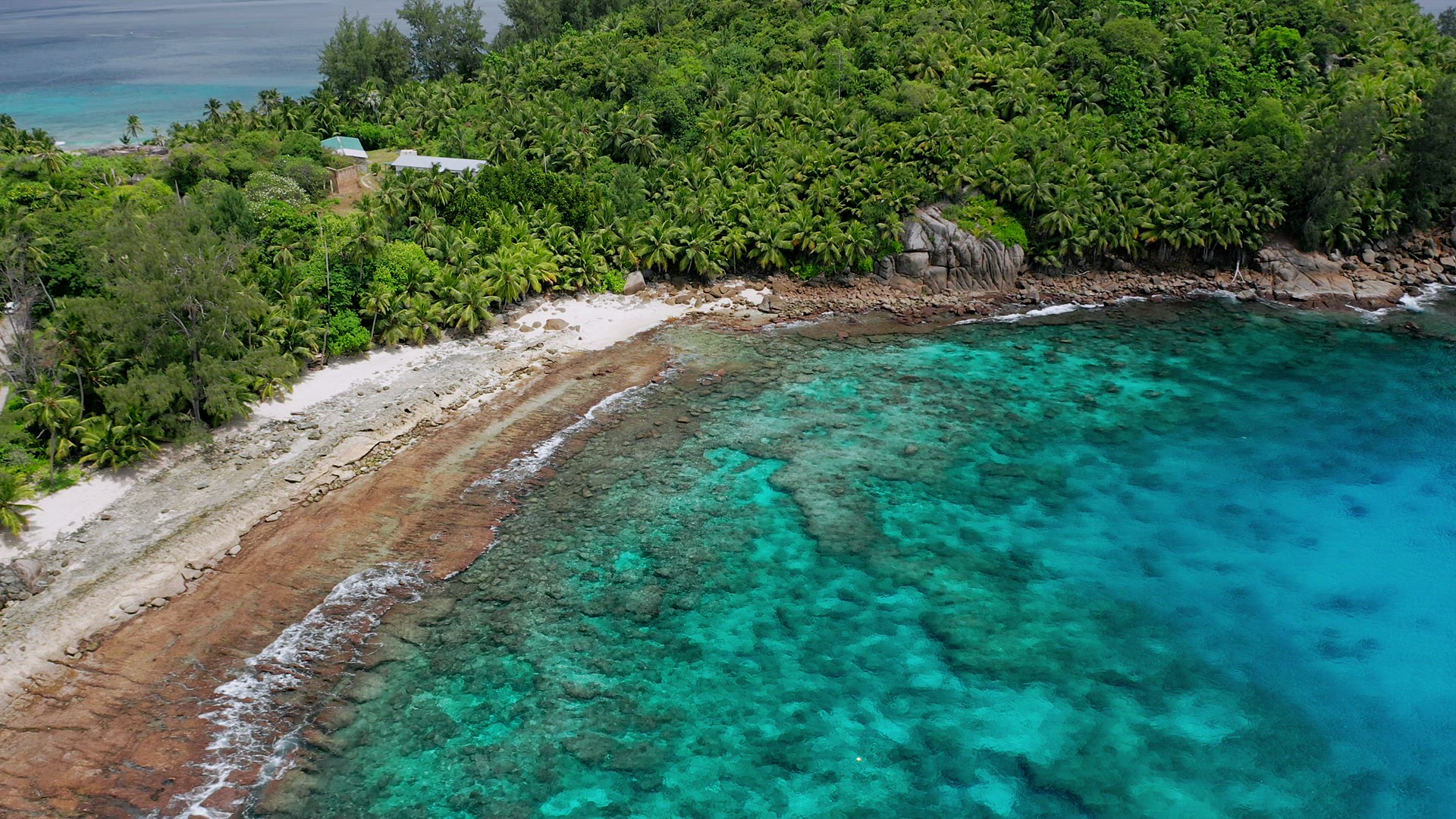 Aerial drone 4k bird eye footage with circle movement of tropical paradise beach with coconut trees