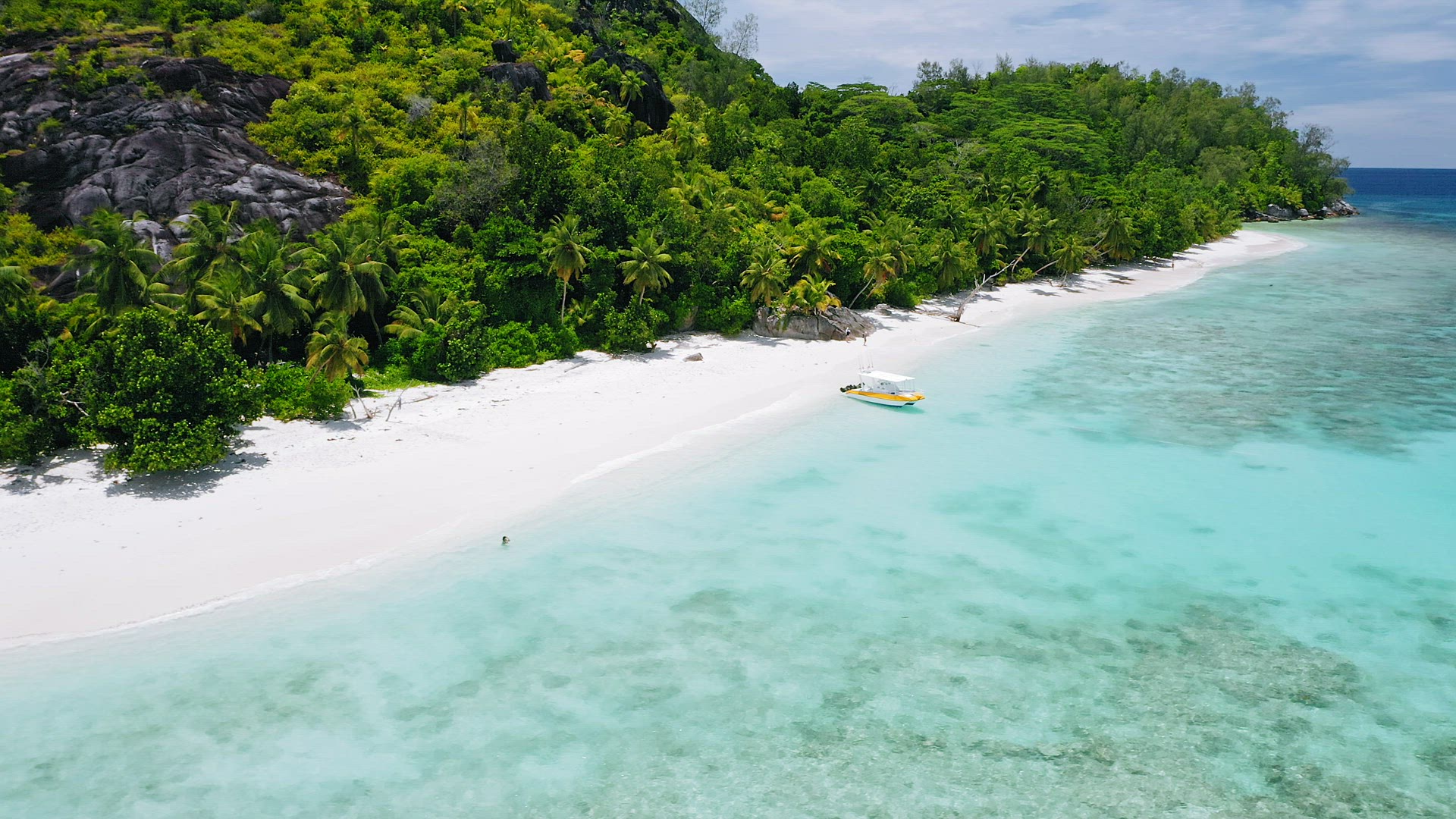 Aerial 4k footage of tropical exotic beach with perfect white sand beach with turquoise blue ocean l
