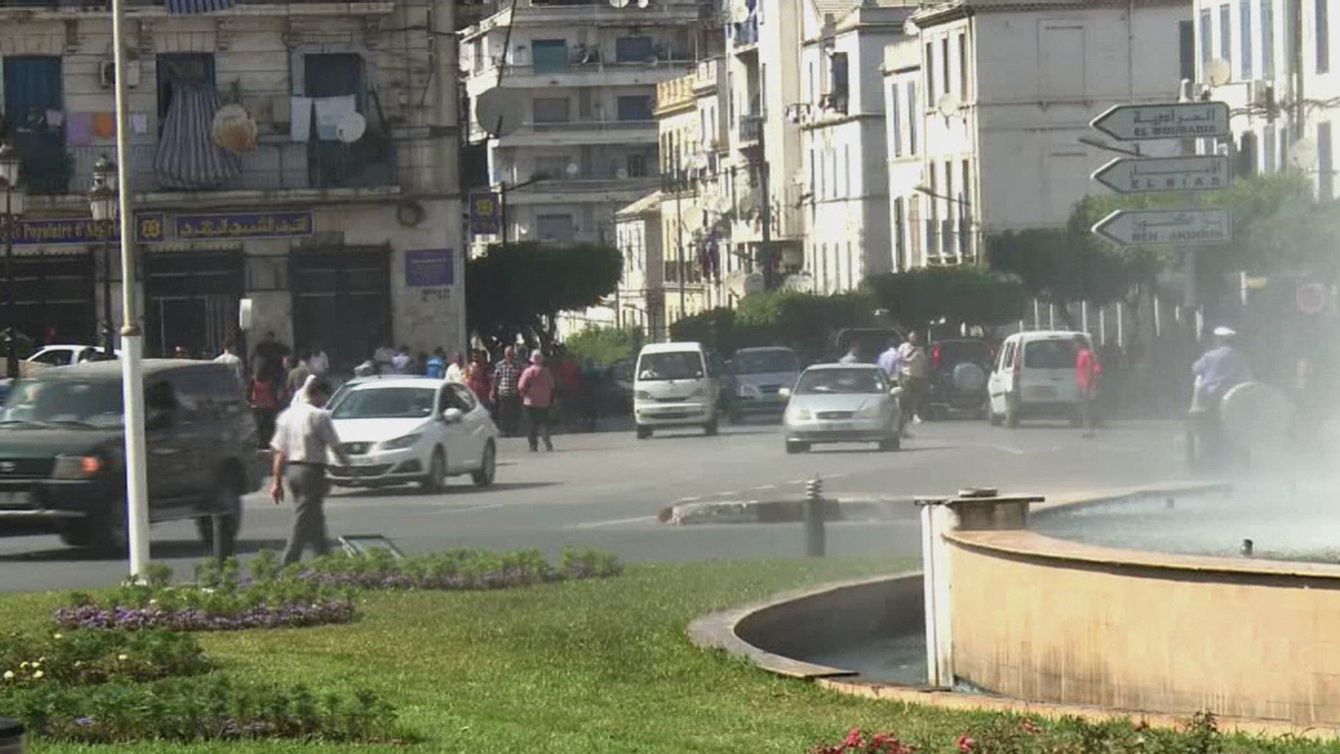 Images illustrate aspects of the Algerian economy, with major banks and people shopping at markets in the capital Algiers. STOCKSHOTS