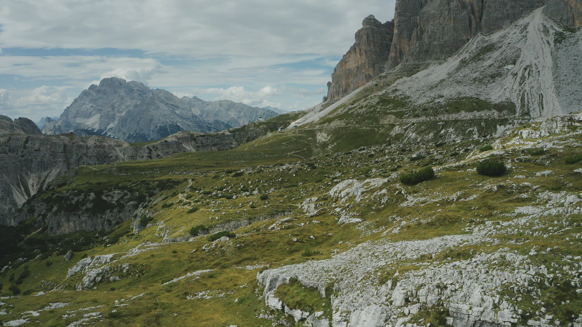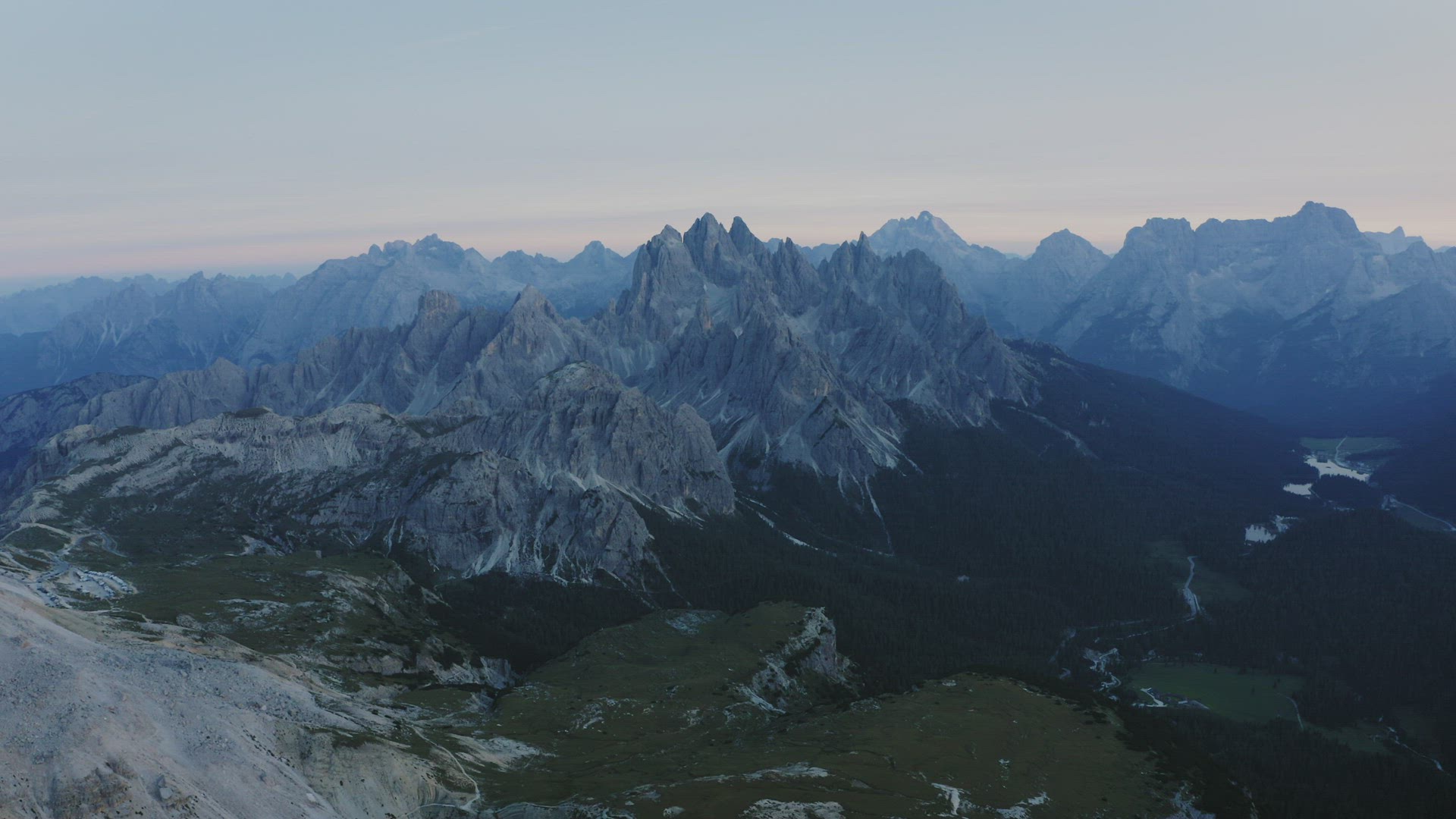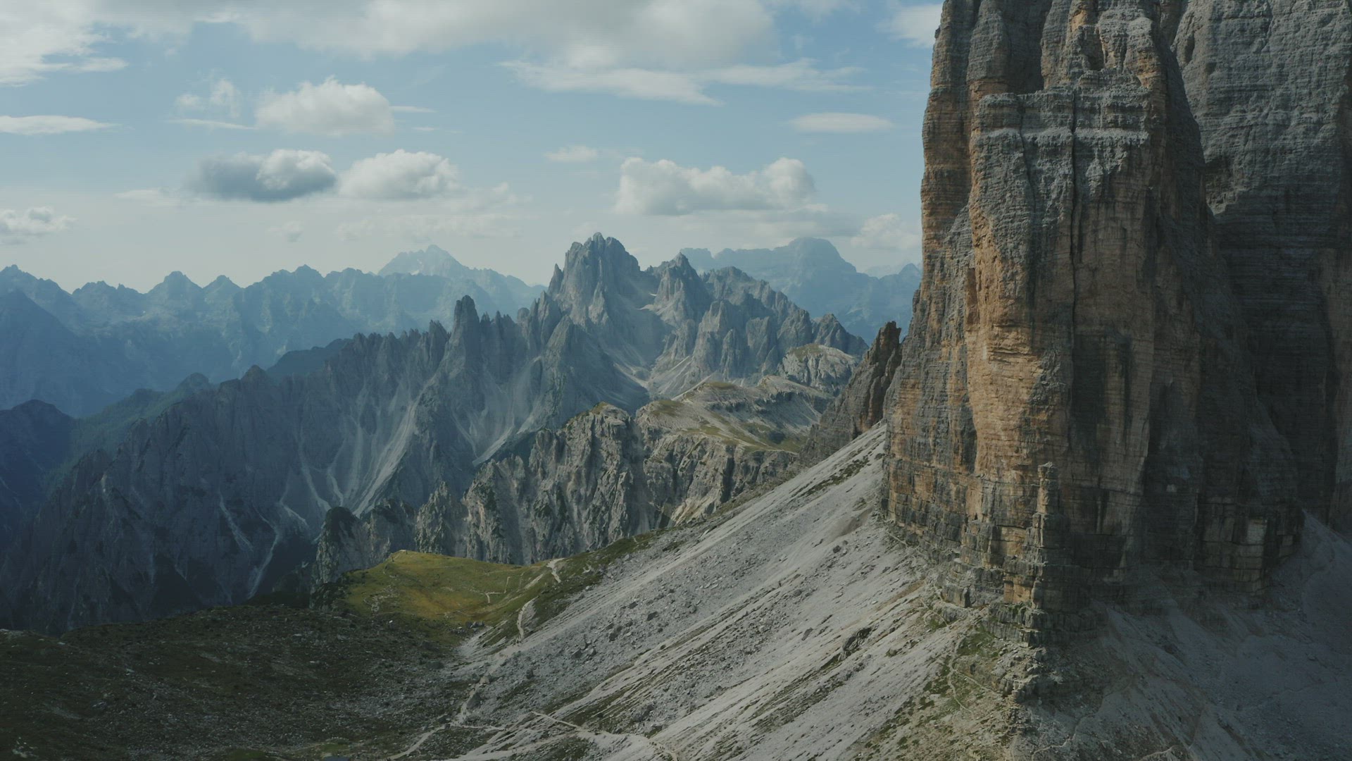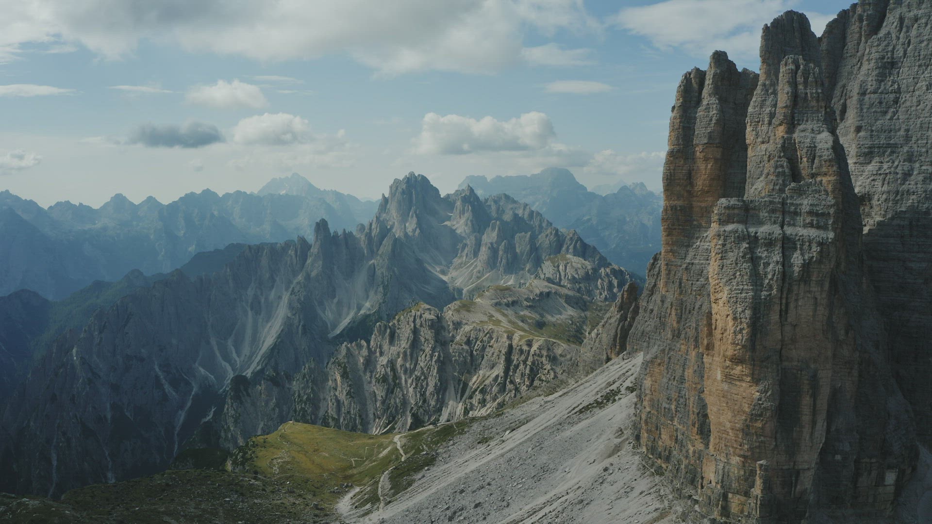 > Amazing aerial view of Seceda peak, in Dolomites Alps, South Tyrol, Italy, Europe. Epic mountain ran