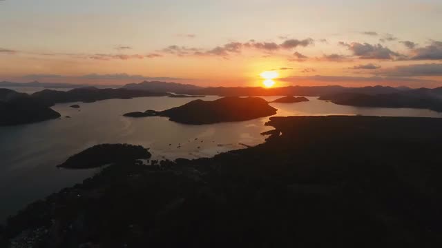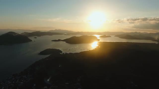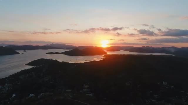 Aerial drone footage of Praia da Ursa beach in sunset light. Sintra, Portugal