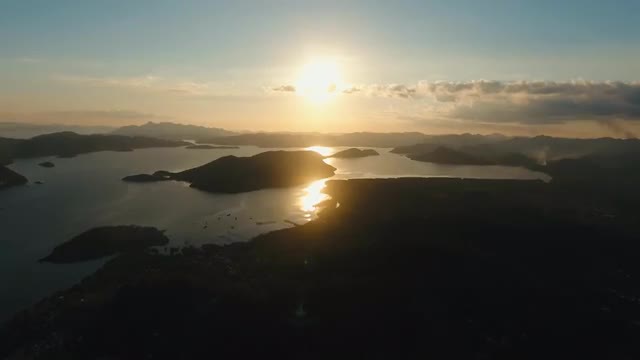 > Aerial drone footage of Praia da Ursa beach in sunset light. Sintra, Portugal