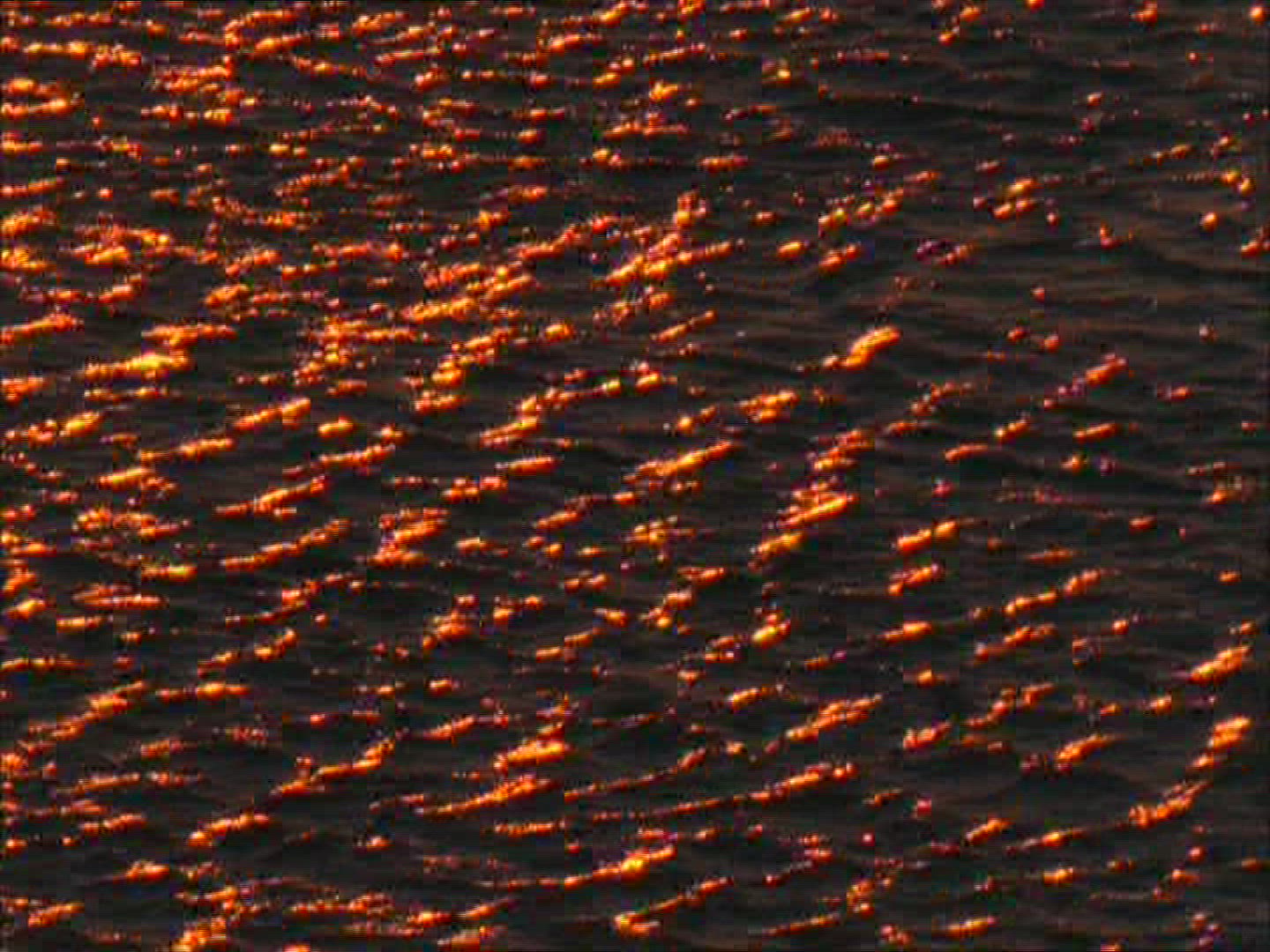 > Aerial flying over sea water surface with calm waves at sunset evening glowing orange sky