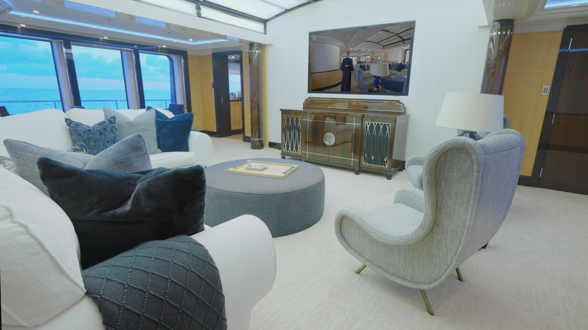 > Couple in a Coffee Scene in the Living Room of a Luxury Yacht - 1