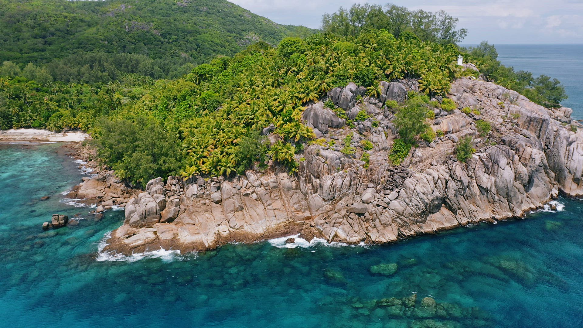 Helicopter Island, Philippines. Aerial drone view of a exotic island with white sand beach, green ju