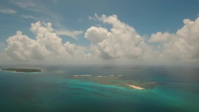 Aerial drone footage of Shimizu Island from distance in El Nido, Palawan, Philippines. Rocks and cry