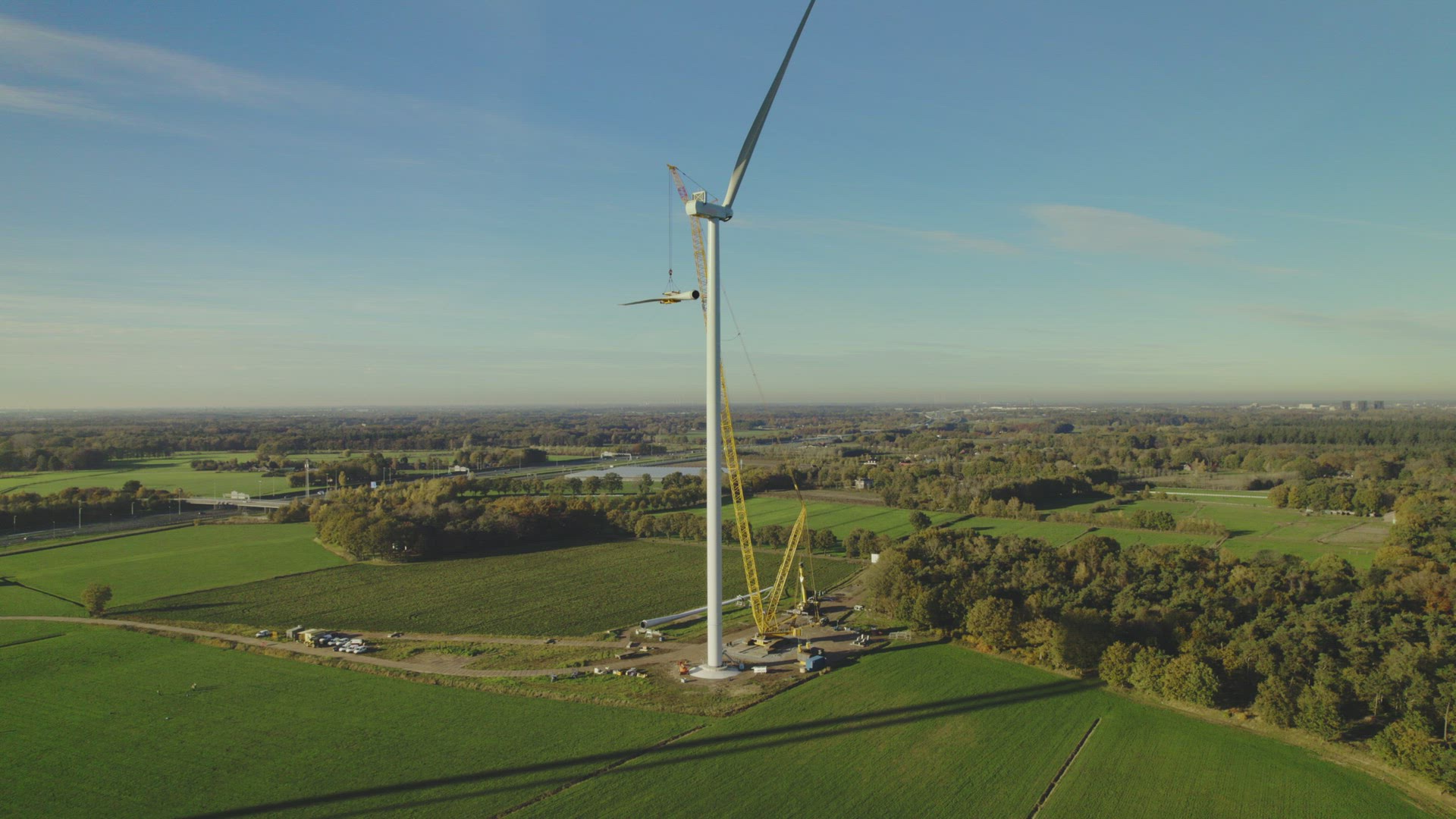 AERIAL WS Wind farm under construction / Galder, Netherlands