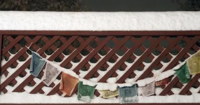 216924 - 4k Time Lapse of Snow Accumulating on prayer flags