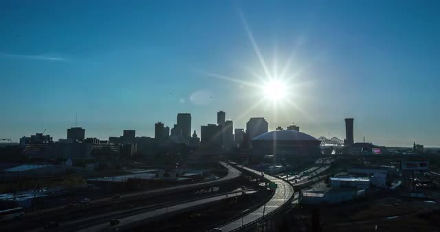 Night to day time lapse transition shot of downtown Portland Oregon looking North.