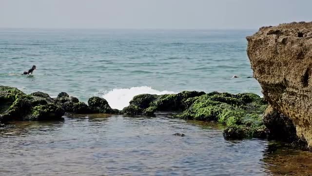 2266790 - Ocean water spray and mist blows over top of wave on stormy day, slow motion in water