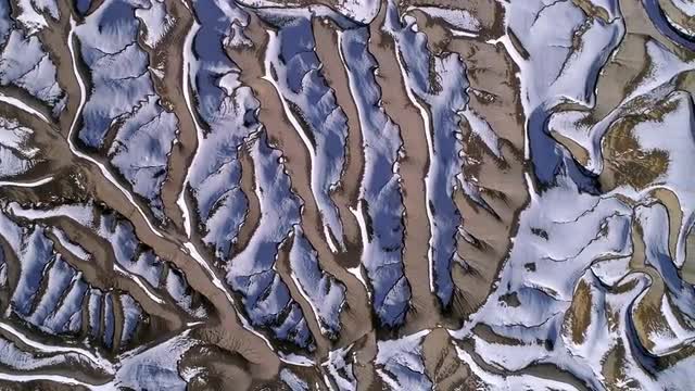 1092082 - Panning aerial view of red earth landscape with snow melting