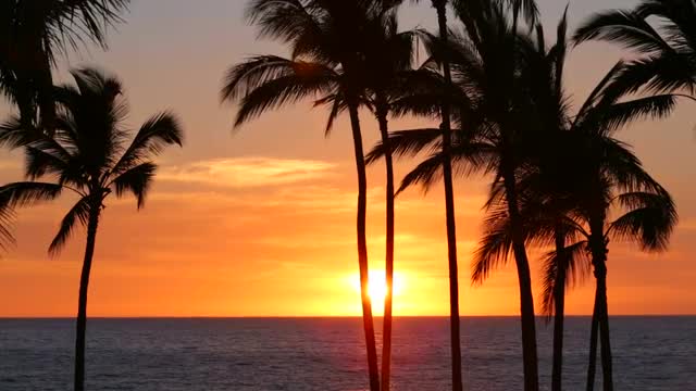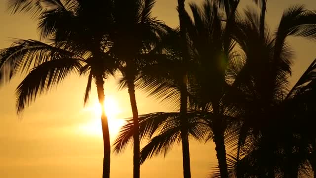 1013980 - Silhouette coconut palm trees on beach at sunset