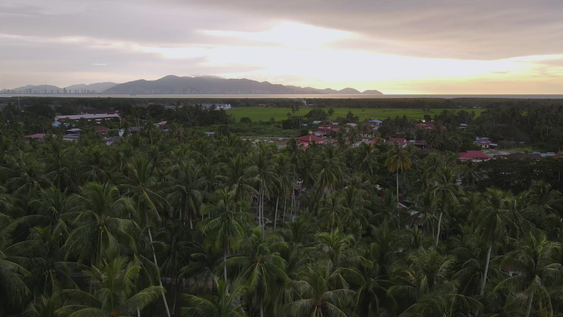 2157528 - Aerial view move over coconut palm tree near Malays village