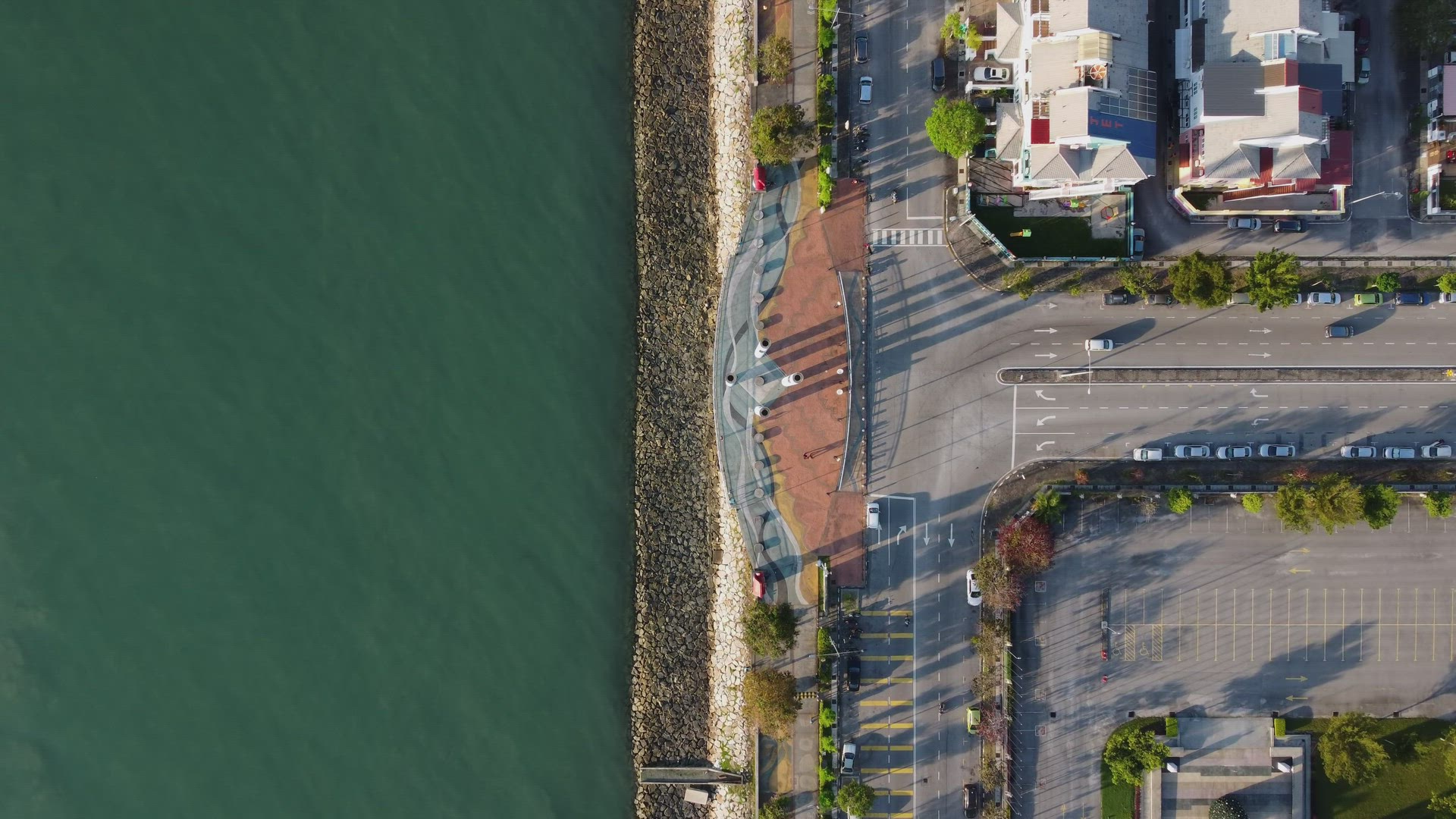 Aerial view look down Karpal Singh Drive in sunshine morning