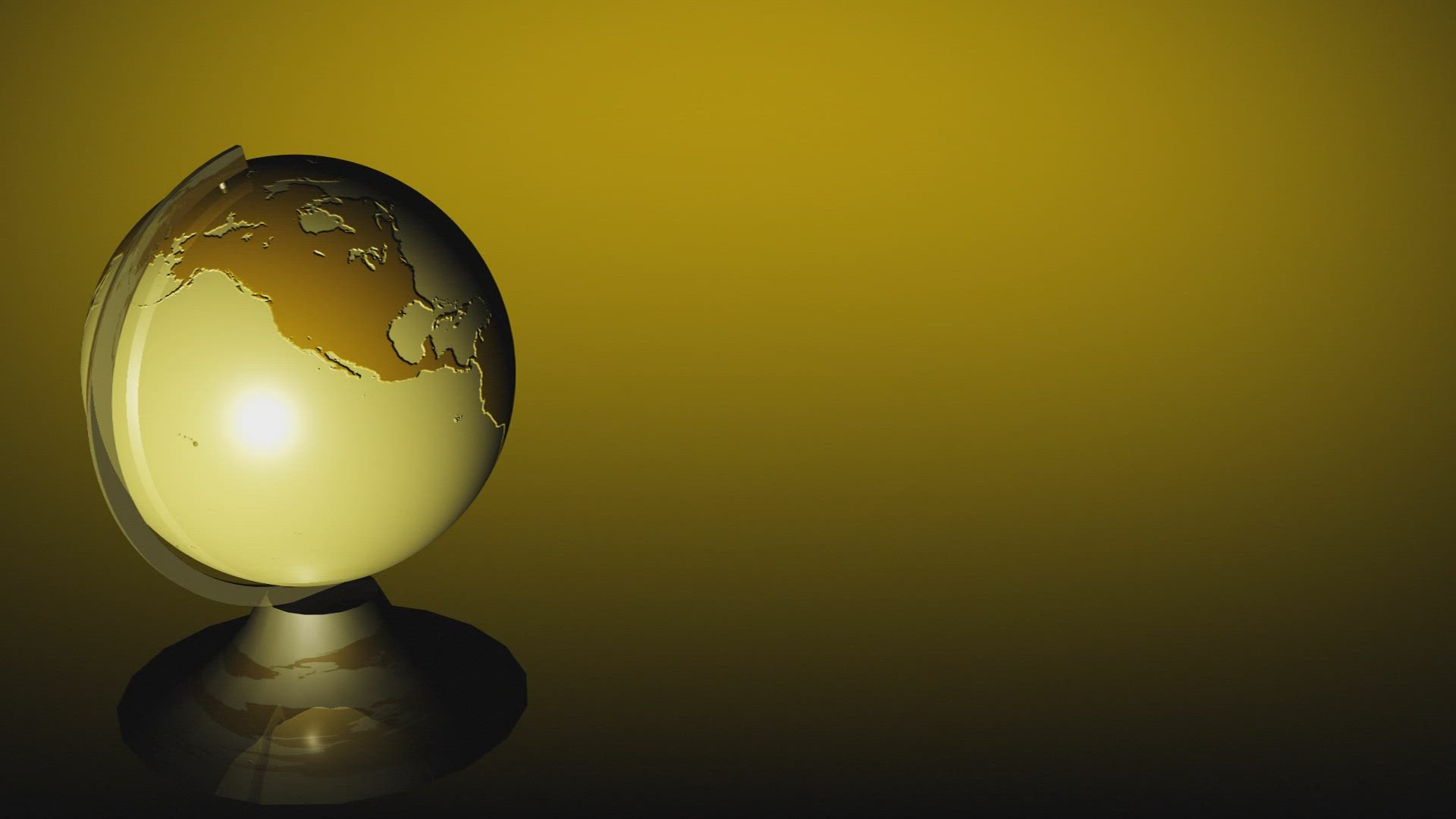 Gold vj loop disco globe ball rotation with electric and ray effect. Motion background. Glamor, party, celebration concept