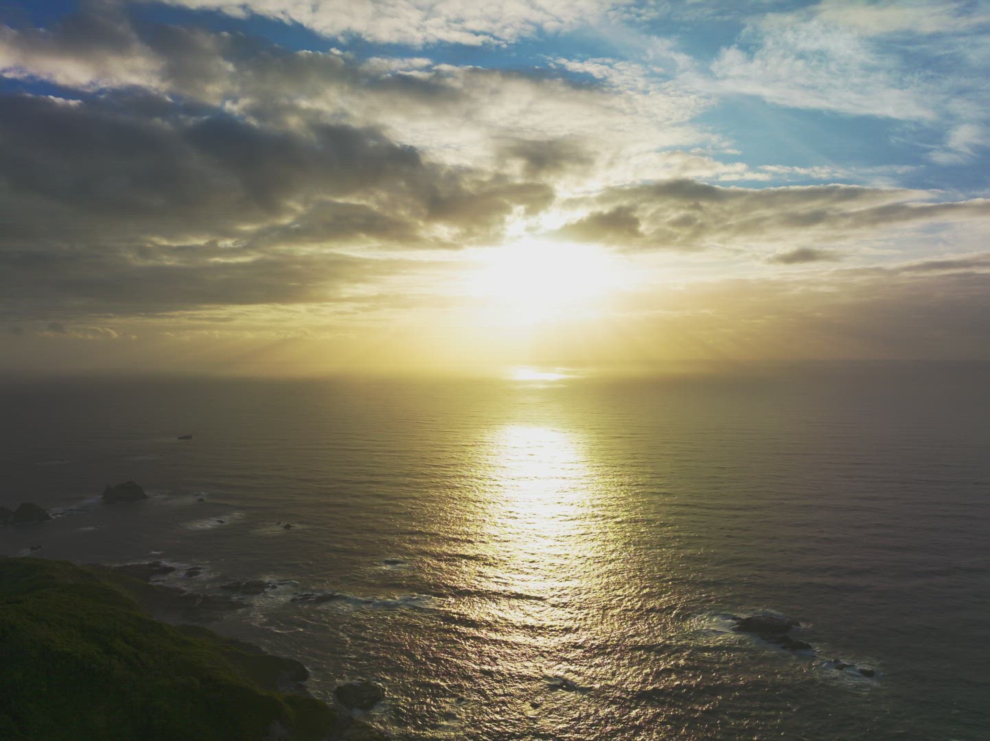 hyper-lapse view of a beautiful golden sunset over the pacific ocean