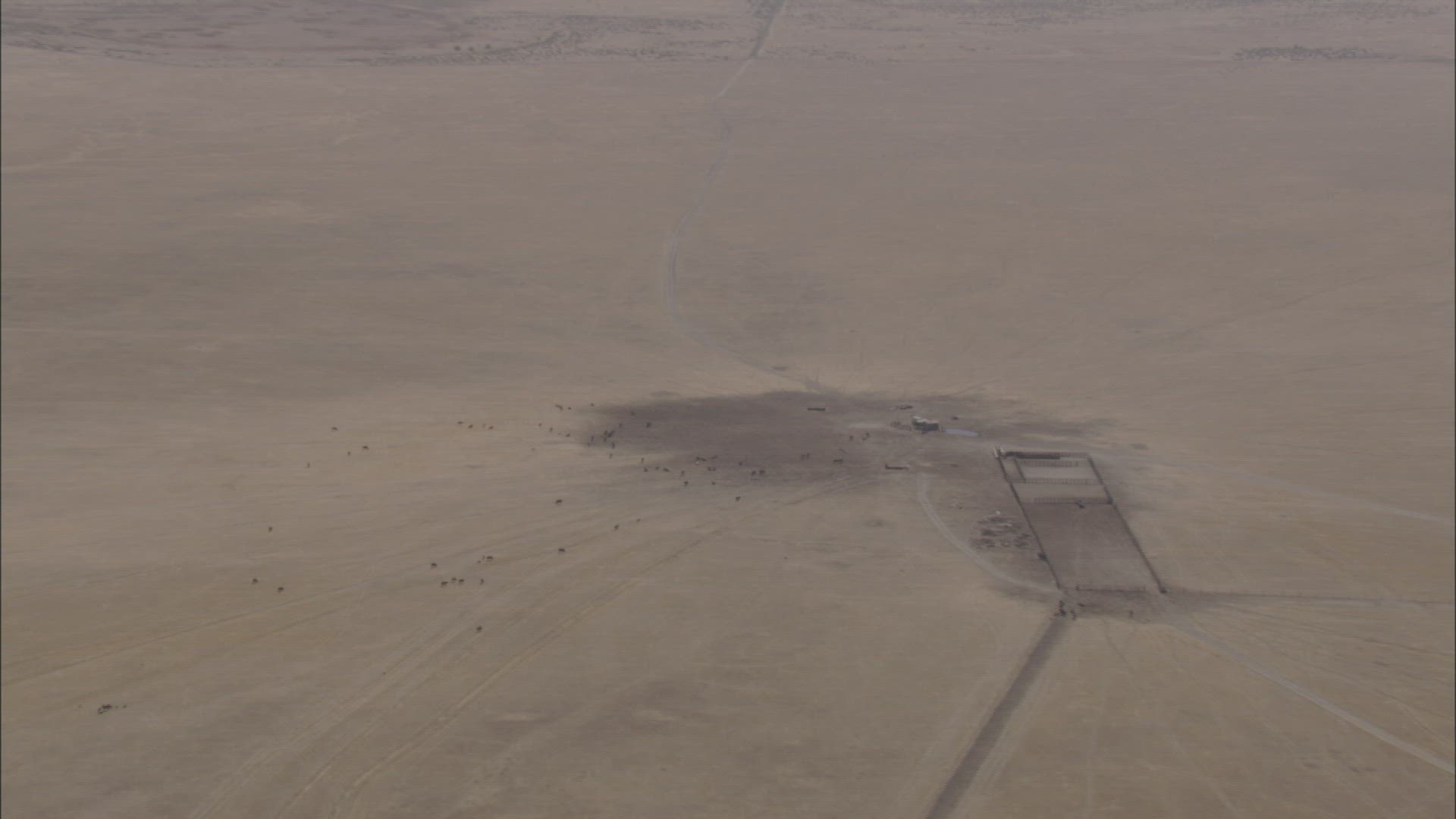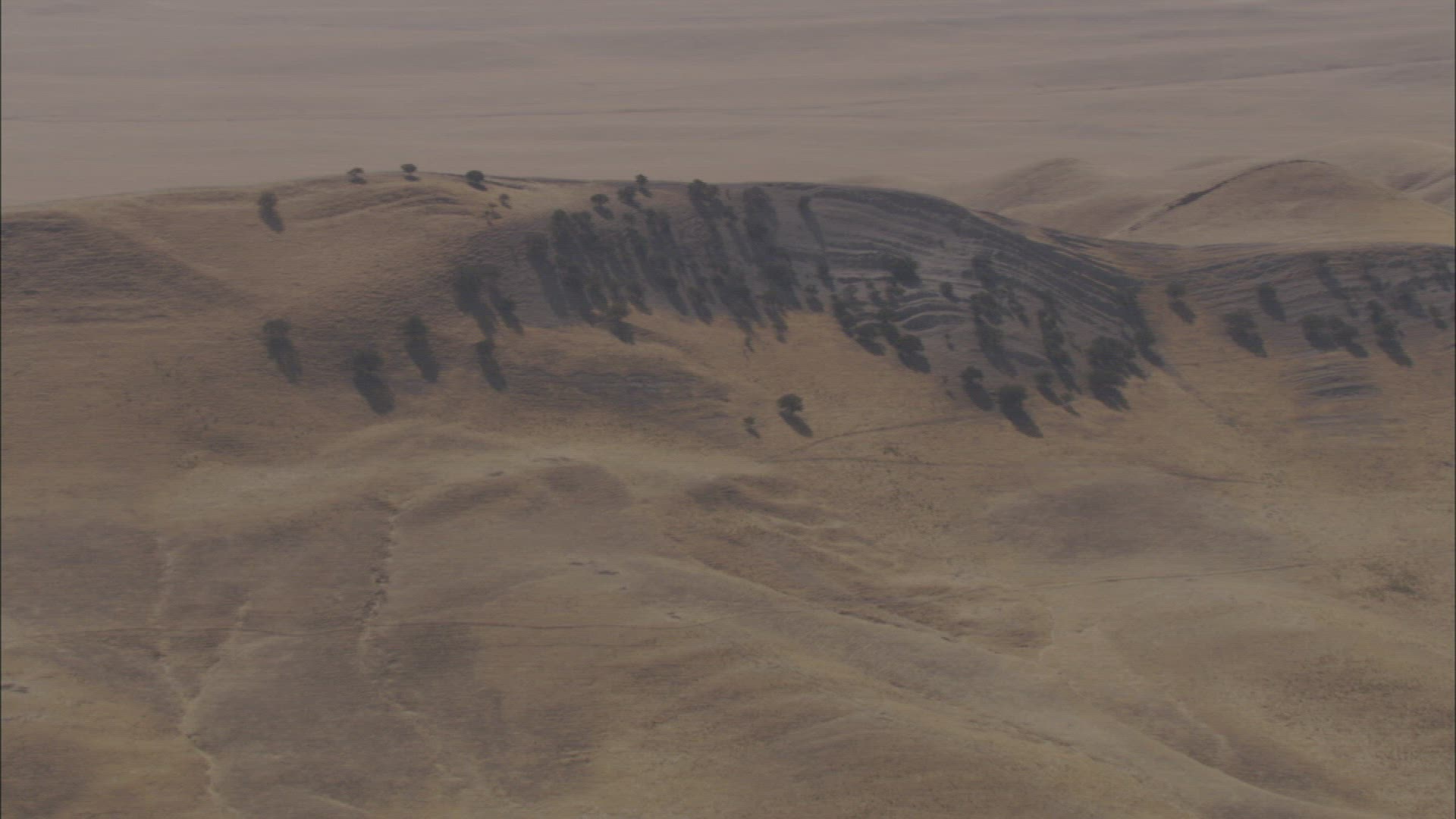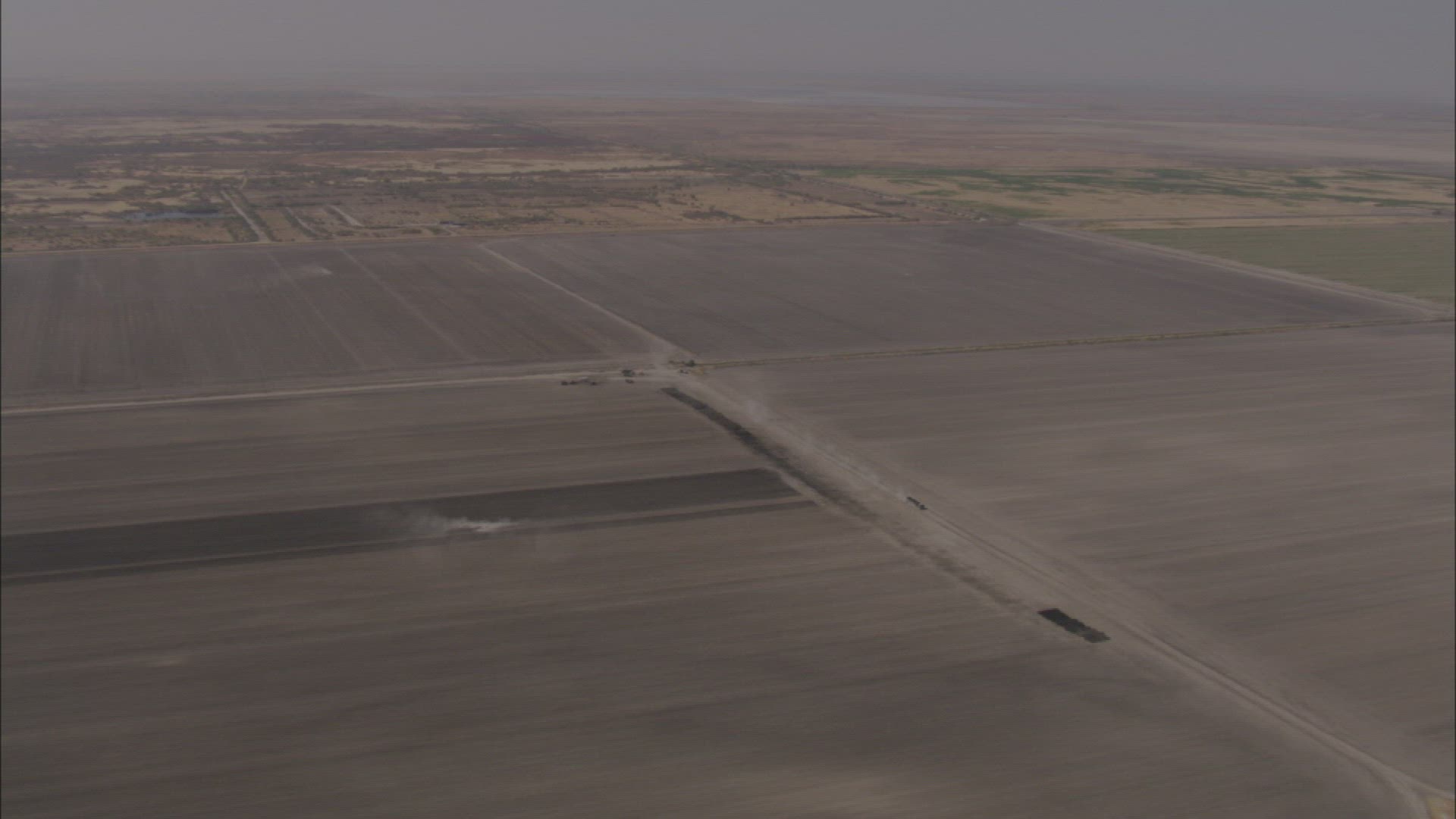 6K Aerial footage flying over a desert landscape revealing mountains in the distance