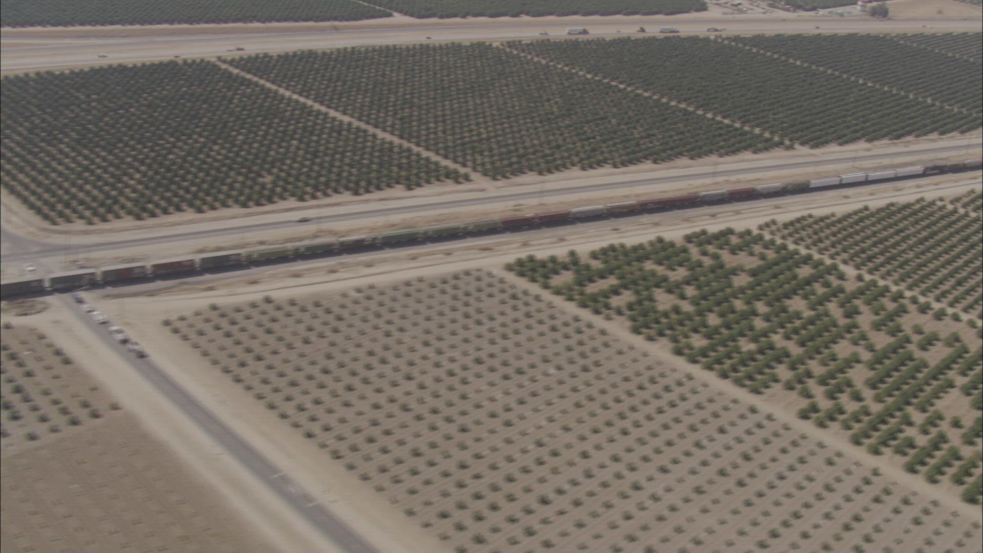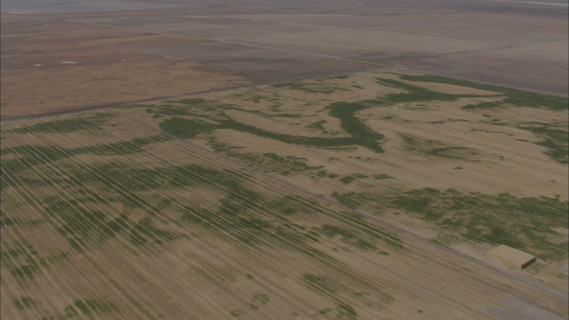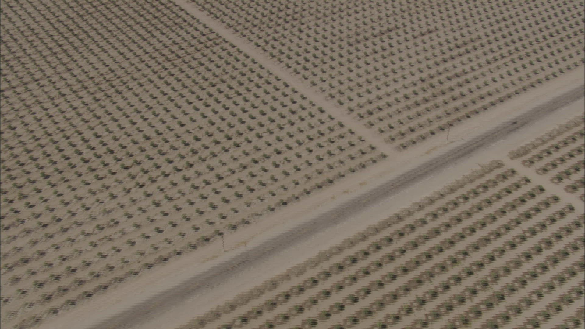 6K Aerial footage flying over a desert landscape revealing mountains in the distance
