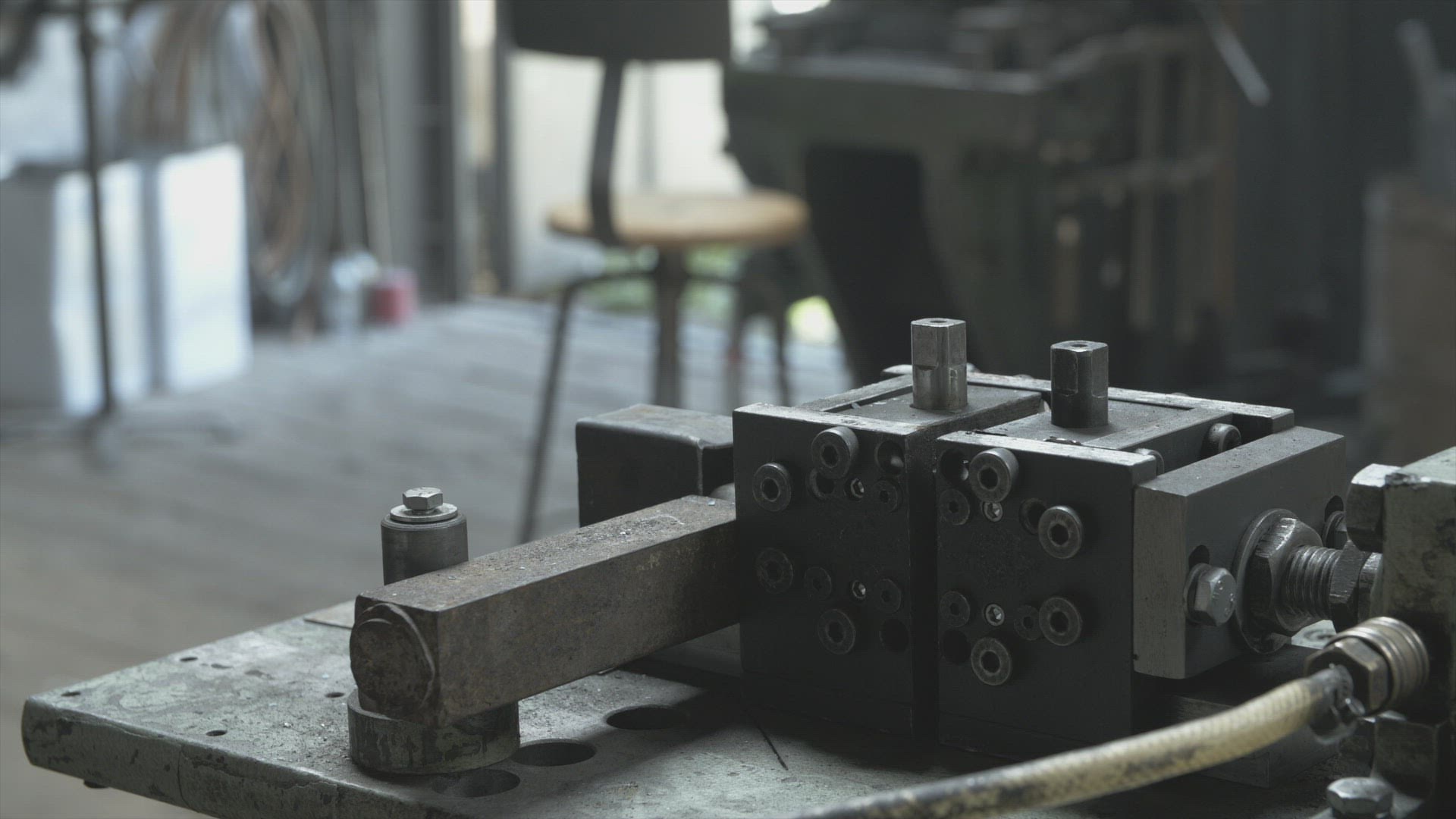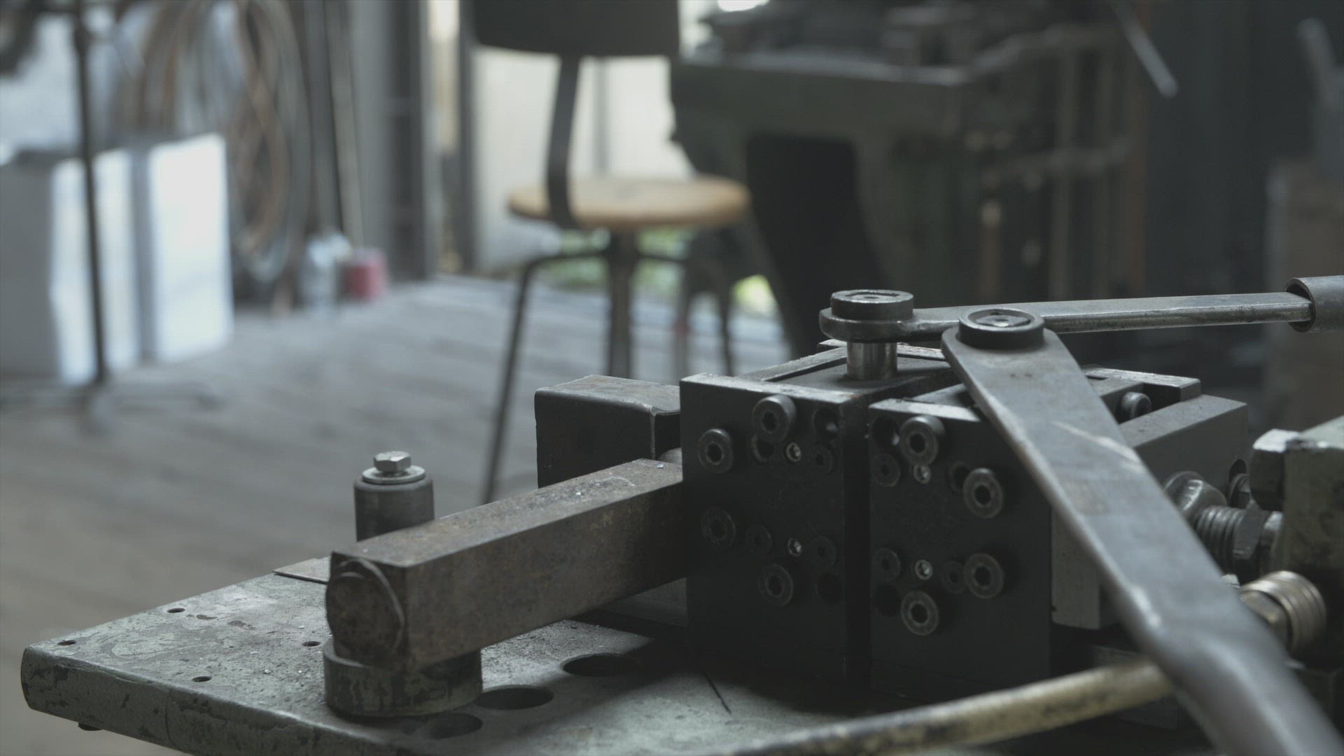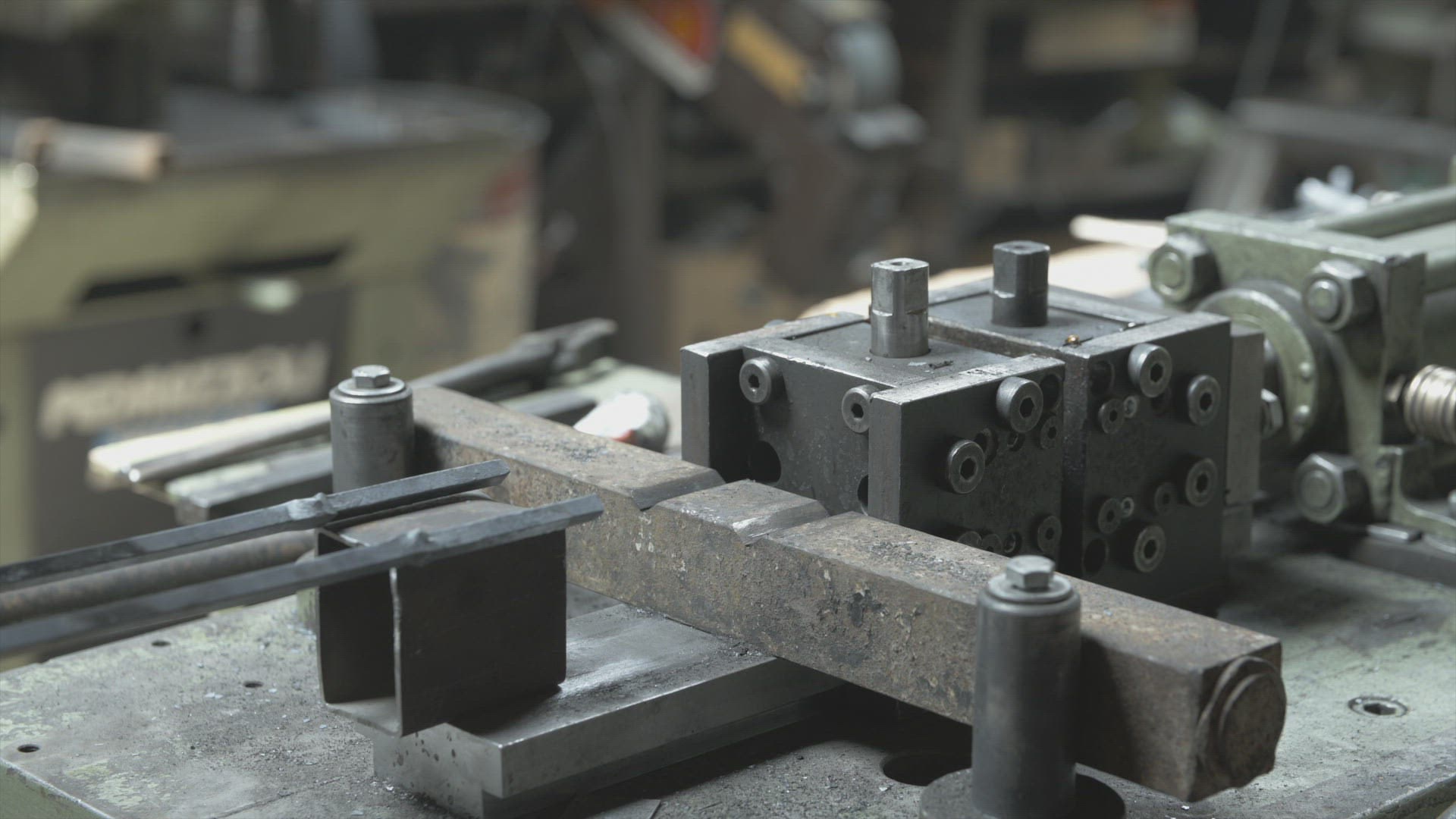Static shot of a grinding process in factory. Large wheel and grinder rotating. Slow motion 25perc. 4k.