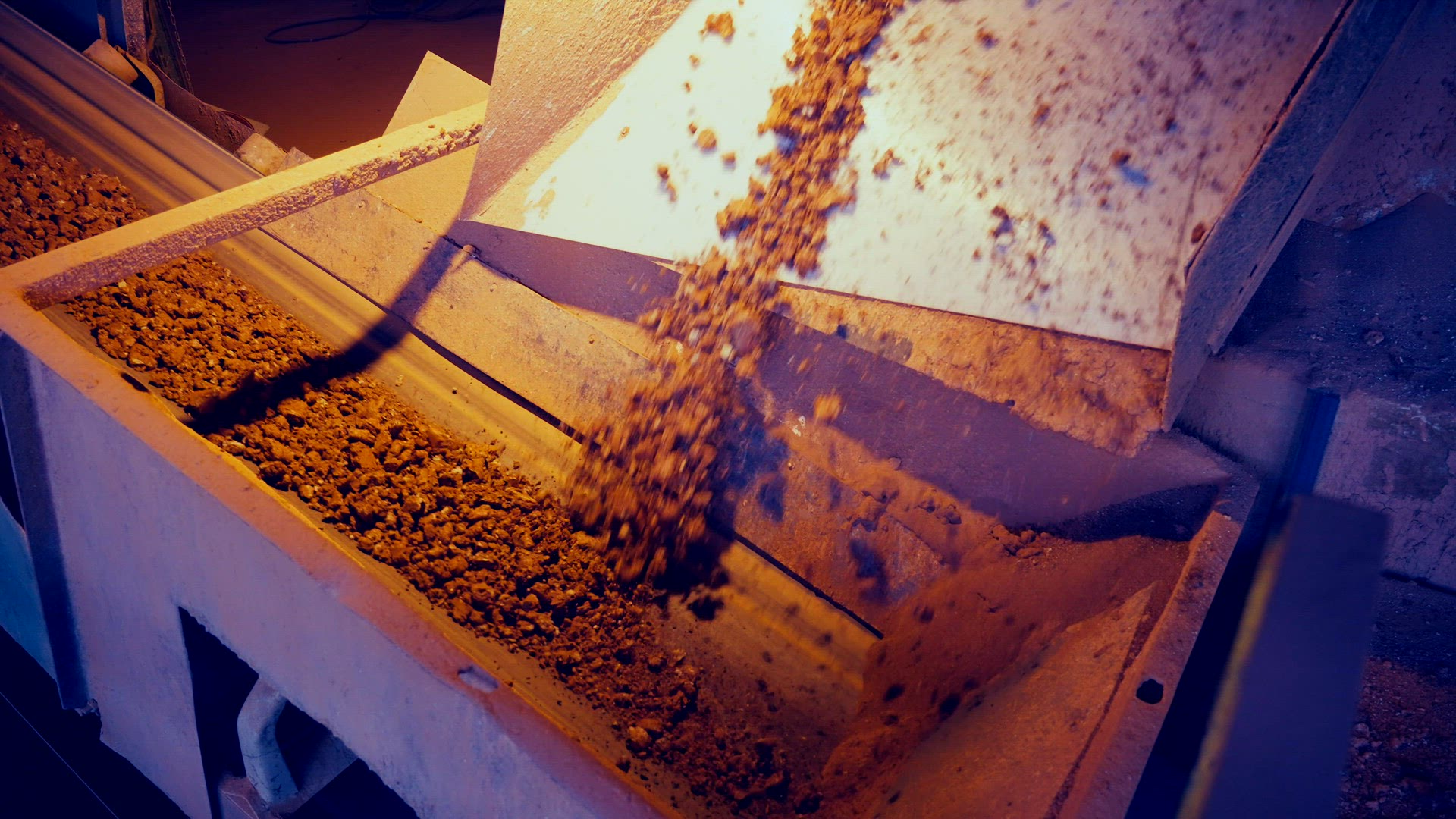Static shot of small clay stones forming a large pile. Slow motion 25perc. 4k.