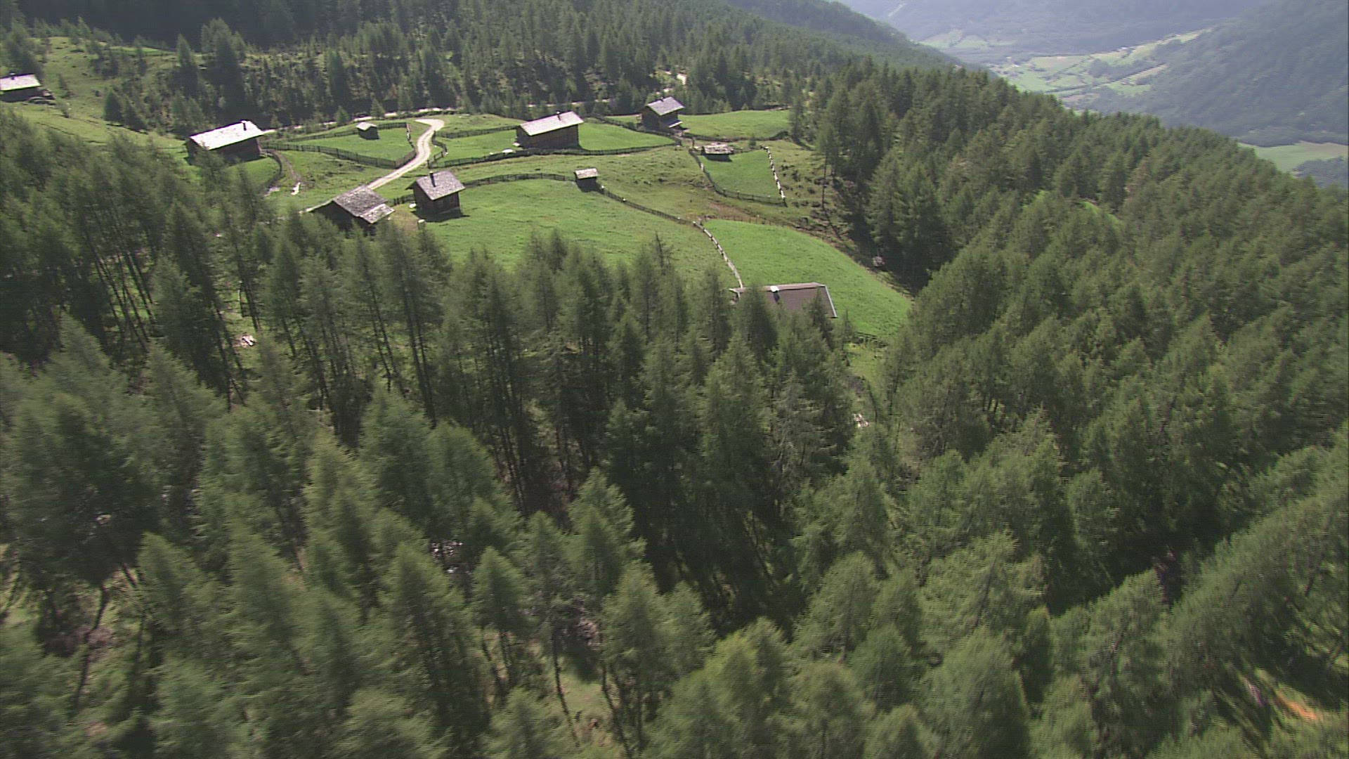 > Austria, Tirol. Aerial view from foggy clouds over Alps mountain with view to famous Krimml waterfal