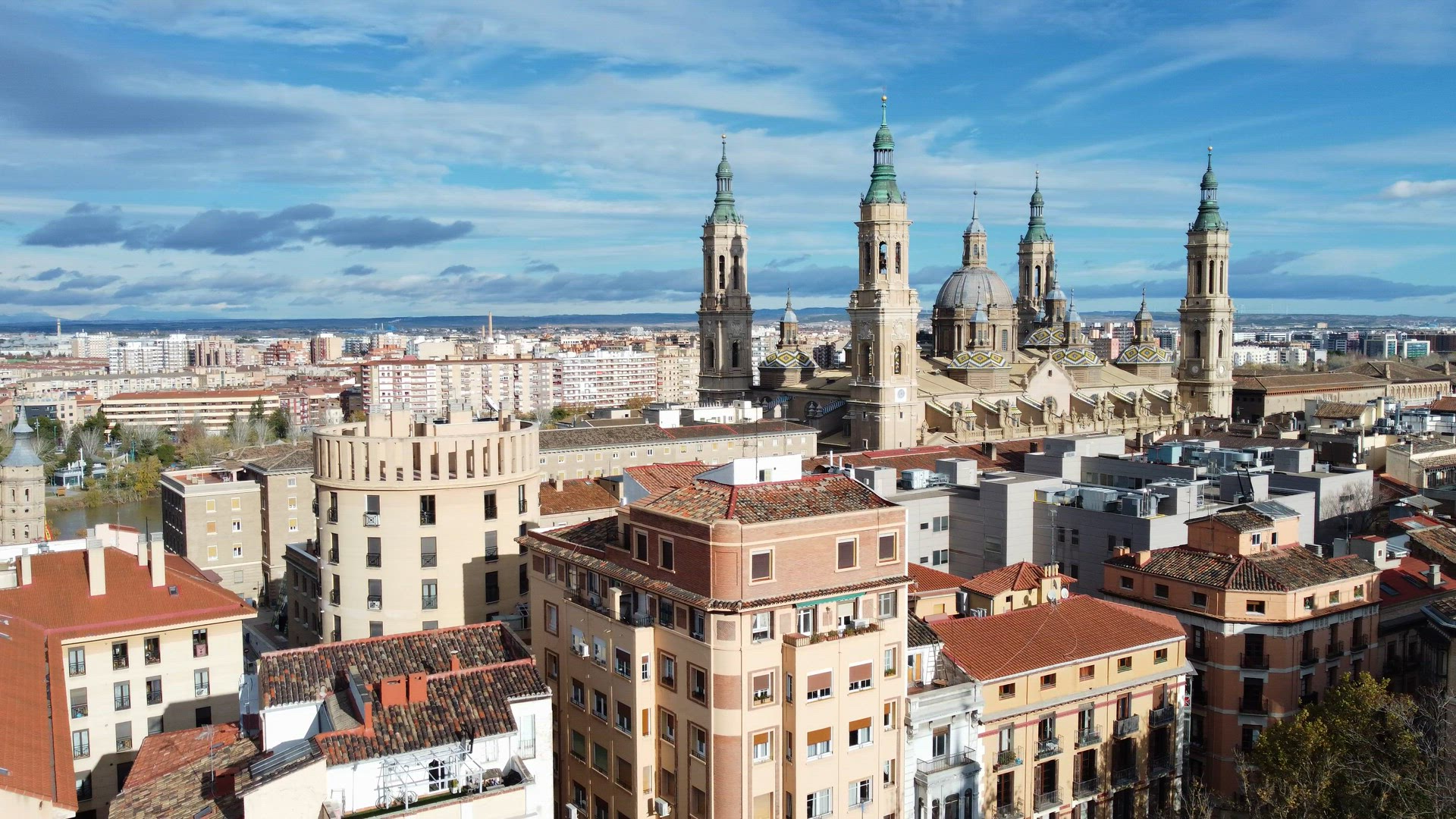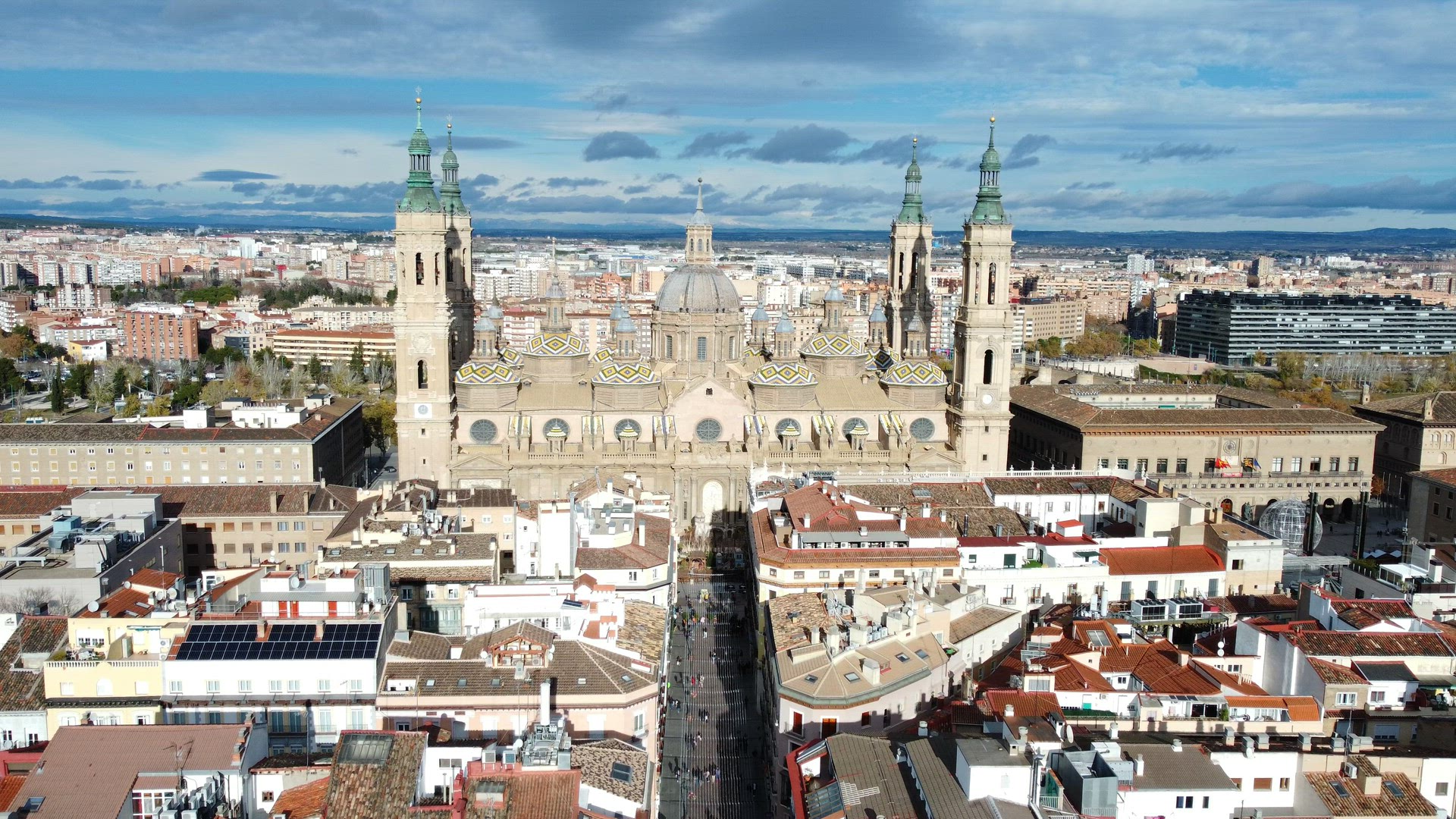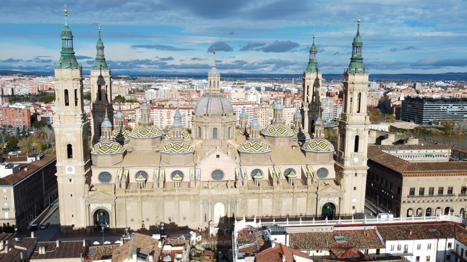 > Zaragoza aerial view with Cathedral-Basilica of Our Lady of the Pillar, Spain