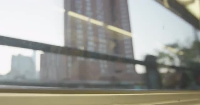 View of the city from a moving subway train illuminated by street lamps, passing cars with headlights on, bright billboards, glowing windows of buildings, a brightly lit Christmas tree, Winter, evening, Moscow, Russia