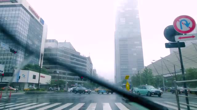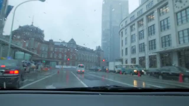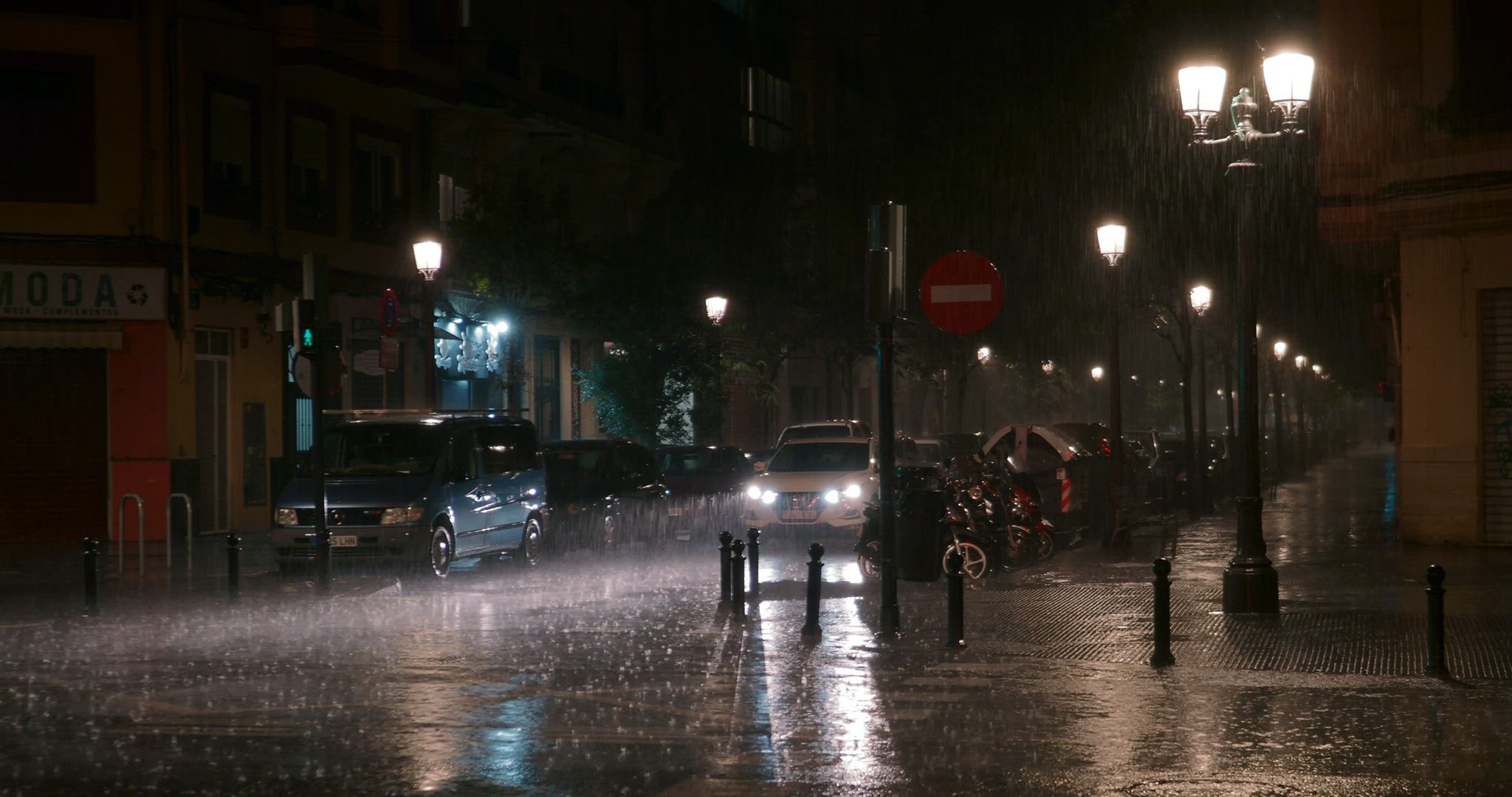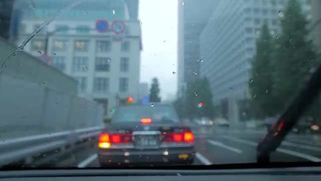 > Transport traffic in the street under the rain at night