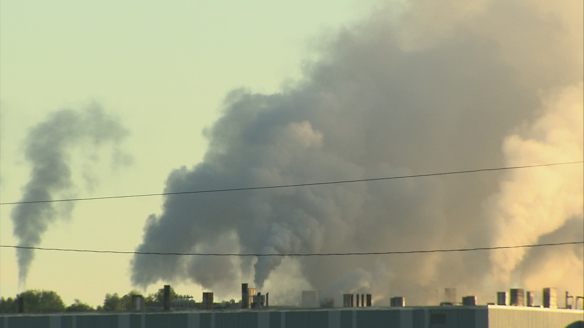 542666 - Air Pollution From Industrial Chimneys Spew Clouds of Smoke in the Sky