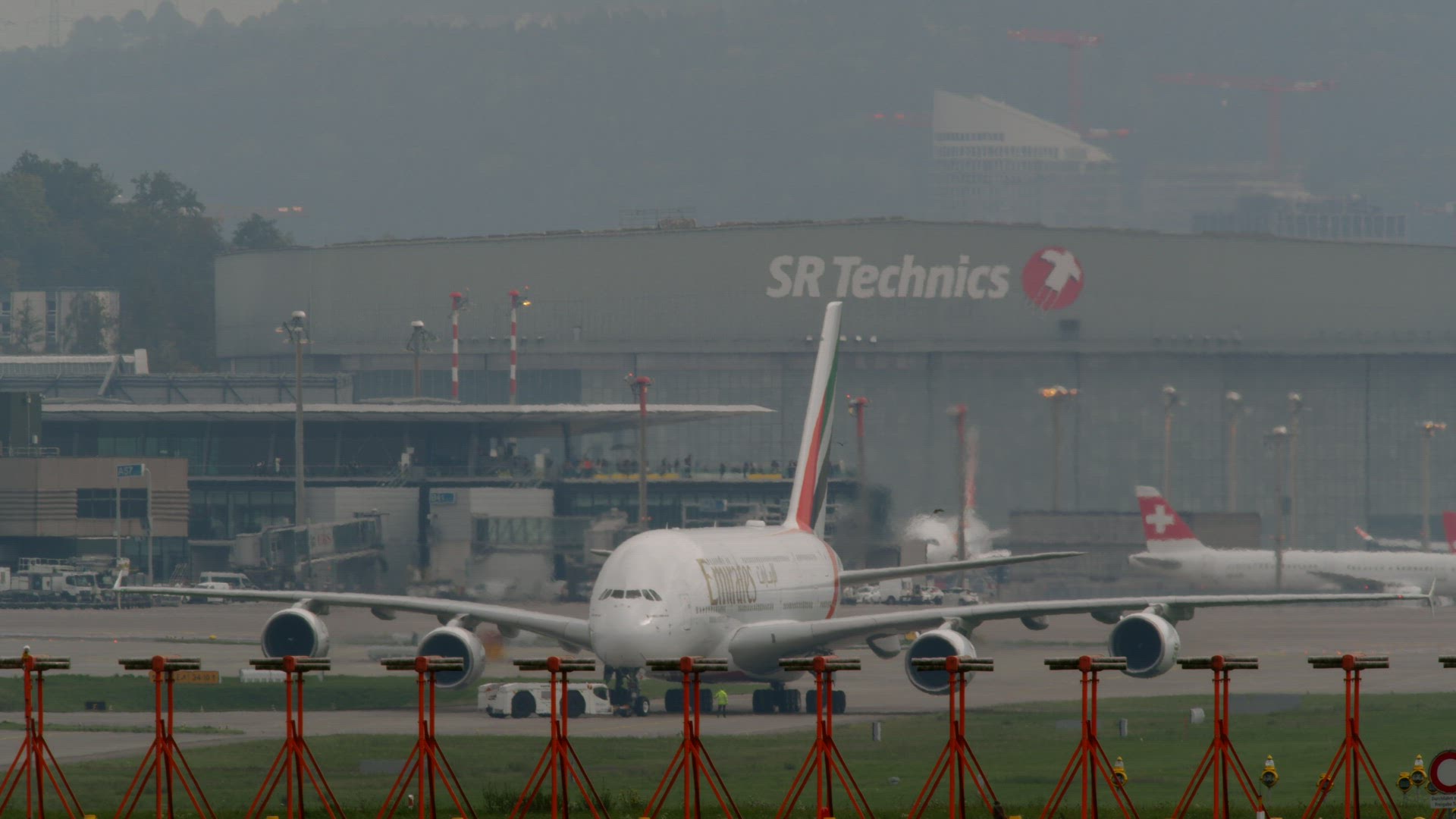 Emirates Airbus A380-800 taxiing taxiing down the runway