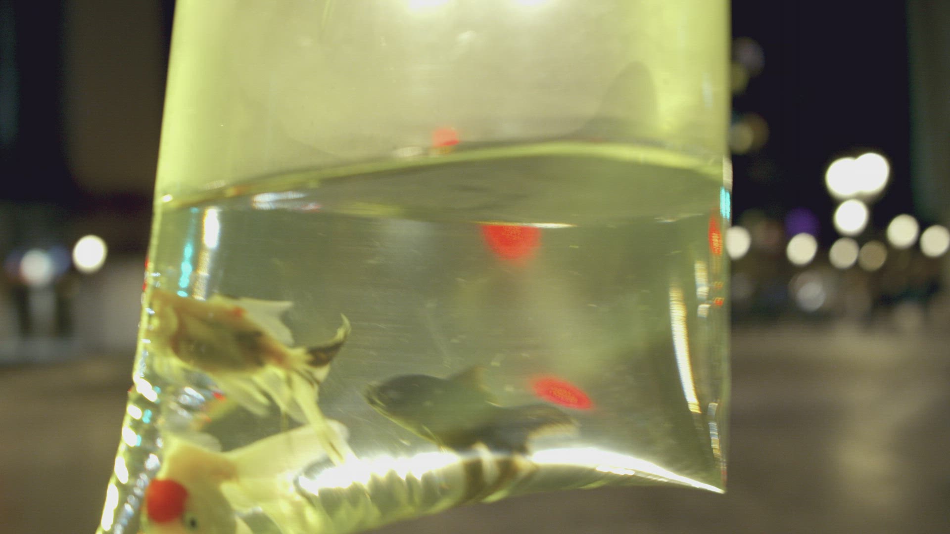 Bag with goldfish - close up in motion in the evening