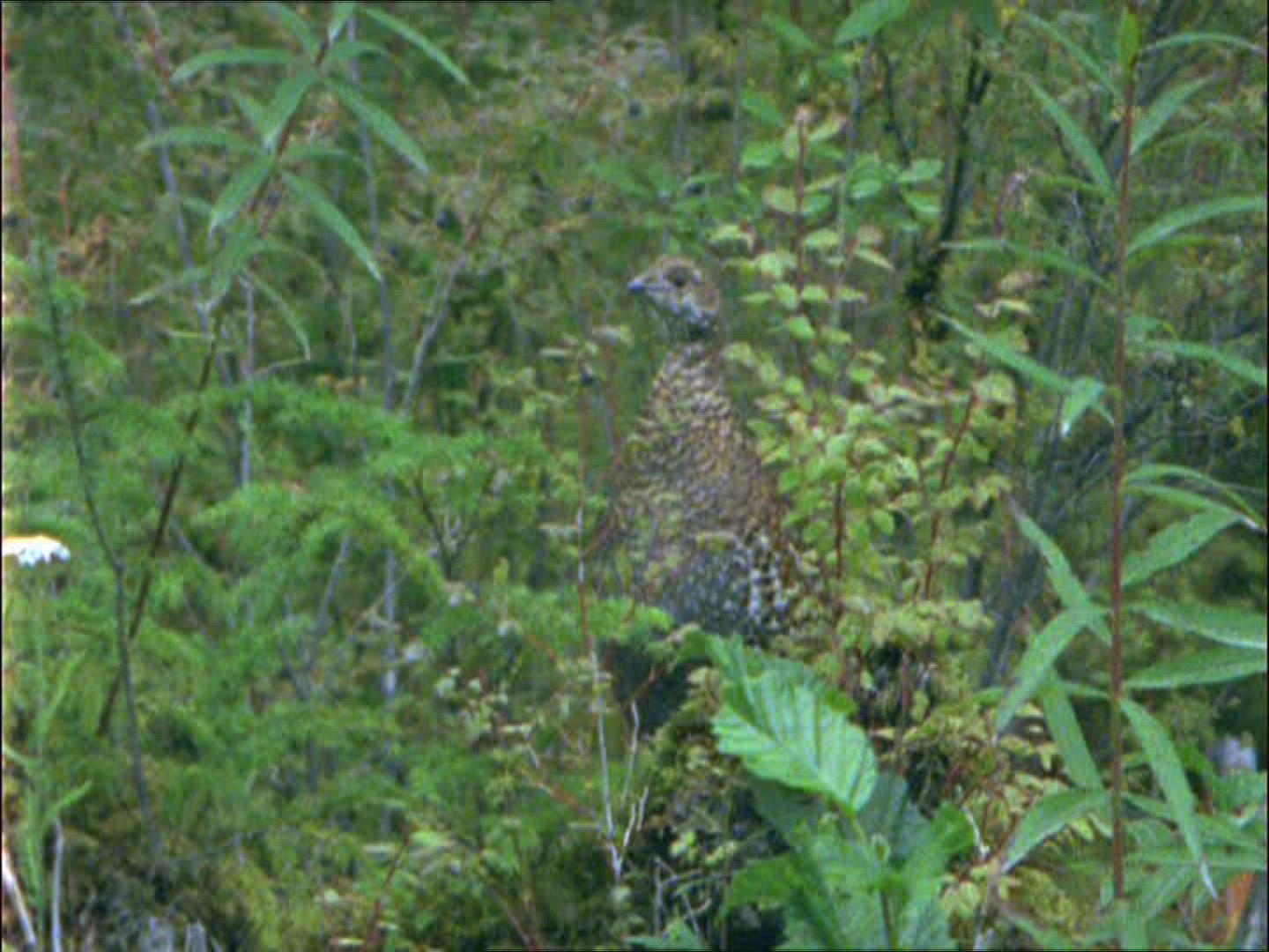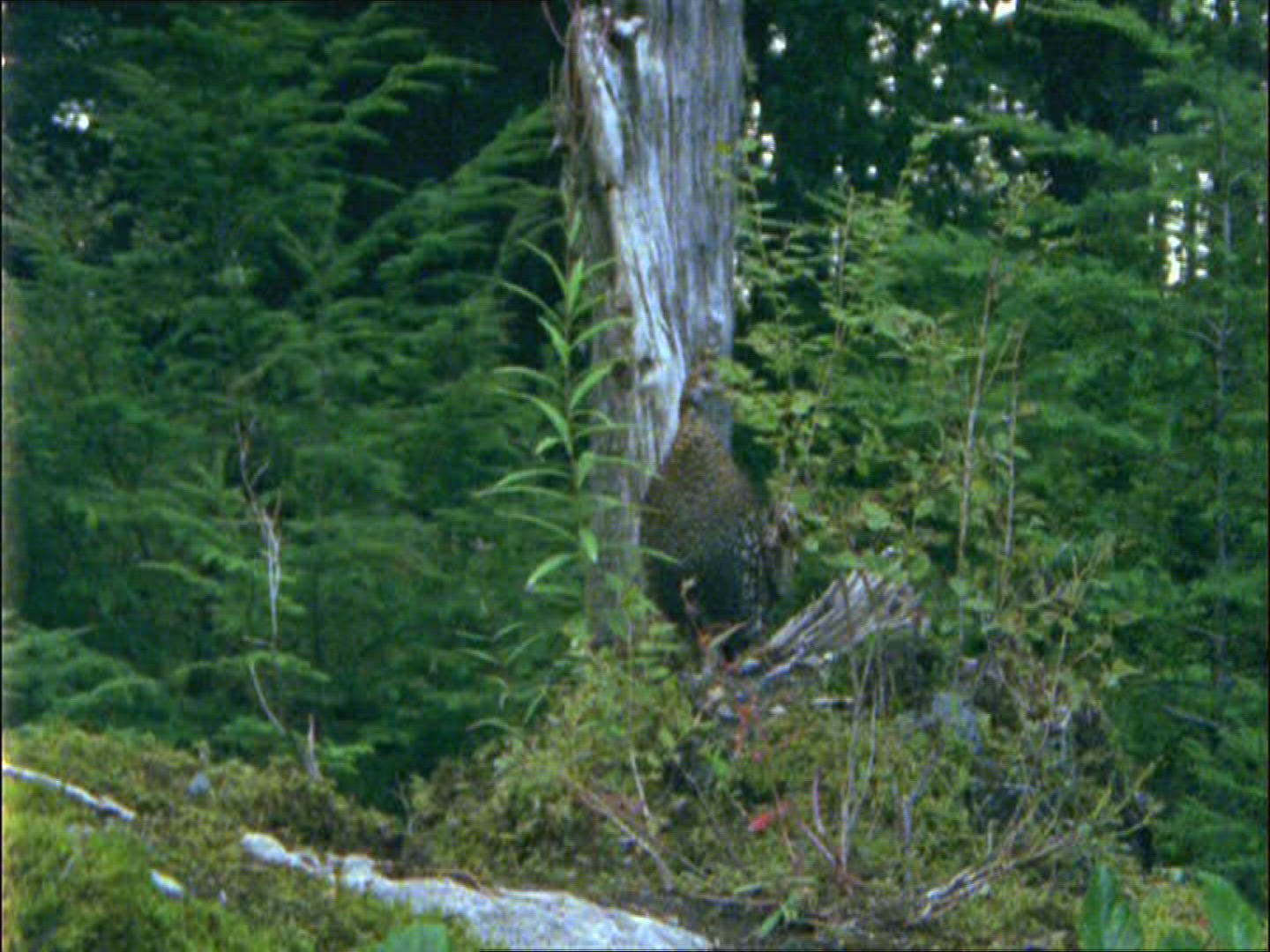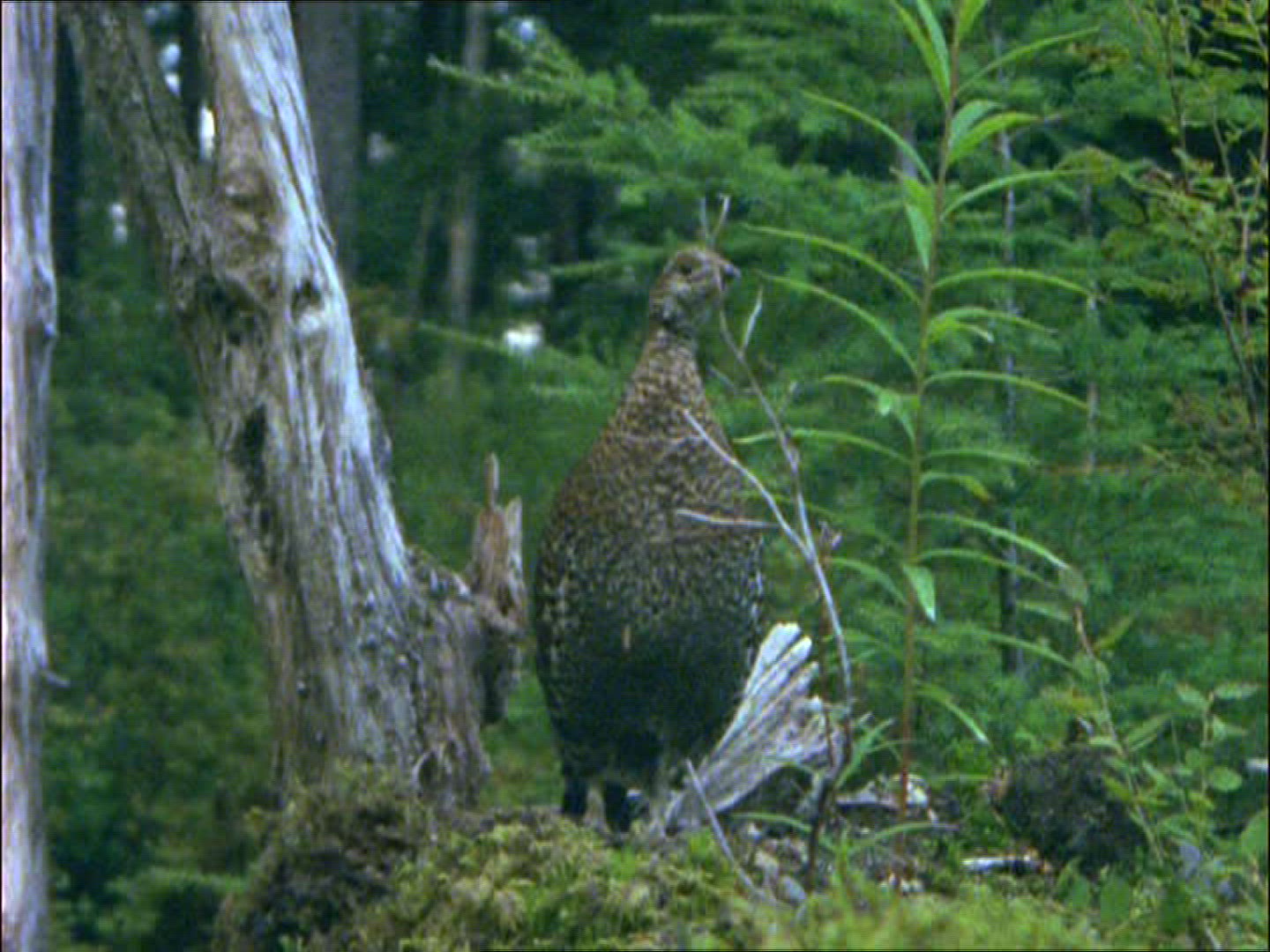 A ruffed grouse drumming on a log for a mate along the Signal Mountain Summit Trail. Grand Teton National Park, Wyoming, USA