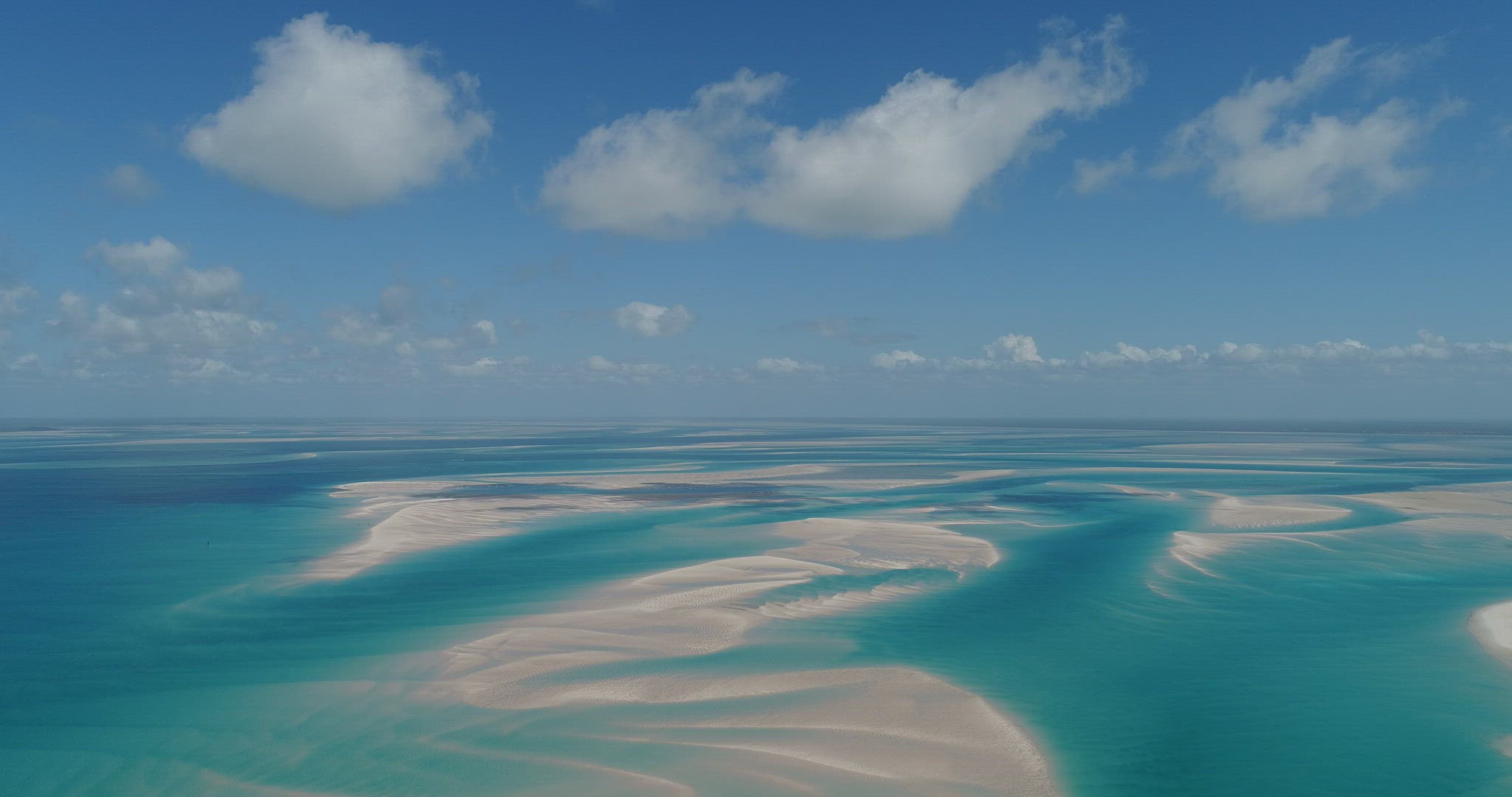 2196755 - Locked off shot of a calm sea and boulders on the beach