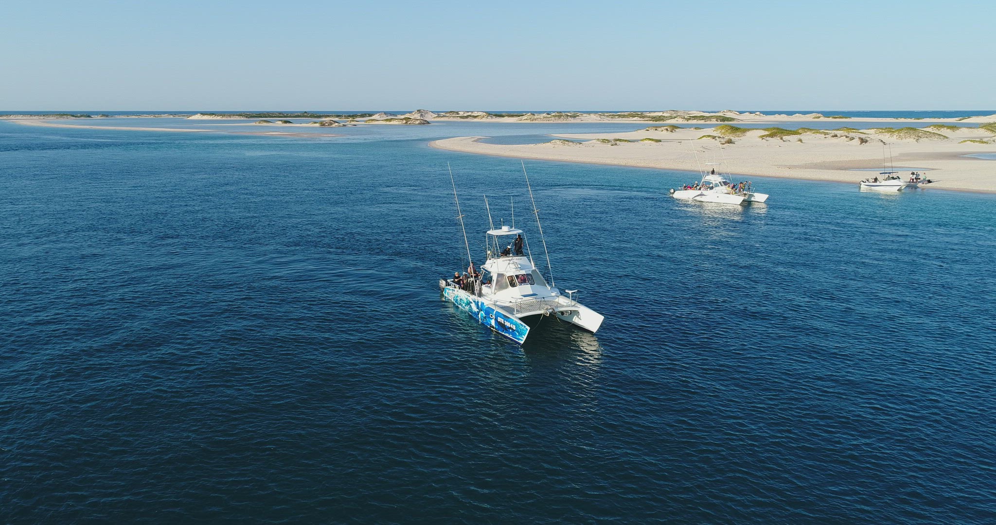 2197844 - Locked off shot of boats at sea in Mozambique at sunset