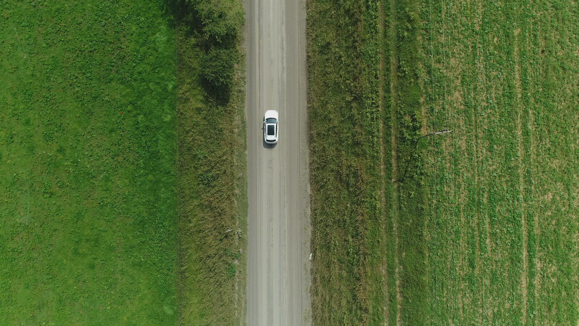 > Top shot of car driving on dirt road