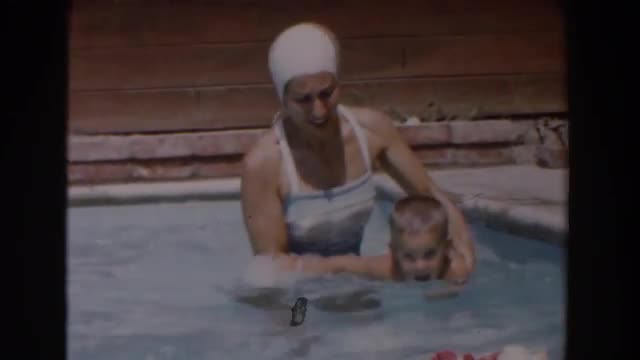 663249 - 1962: a young boy learning to swim with his mom in a pool VAN NUYS, CALIFORNIA